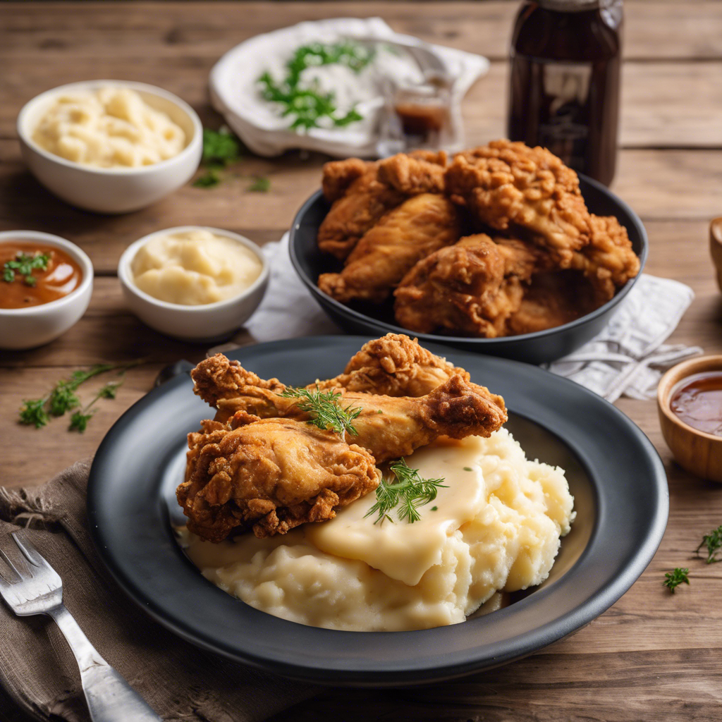 - Serve the crispy fried chicken alongside the creamy mashed potatoes, and drizzle with the savory gravy. Enjoy your delicious Southern comfort meal!