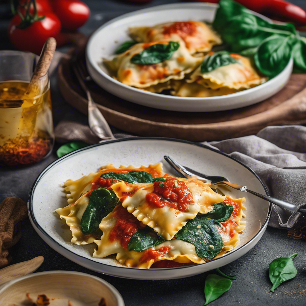 The Spicy Arrabbiata Chicken and Spinach Ravioli is a tantalizing Italian dish that combines the heat of arrabbiata sauce with the savory flavors of chicken and spinach-filled ravioli. This dish has its roots in the central regions of Italy, where the arrabbiata sauce, known for its fiery kick, originated. The dish has gained popularity in modern Italian cuisine, with chefs adding their own unique twists to the classic recipe. The best version of this dish can be found in authentic Italian restaurants that prioritize using fresh, high-quality ingredients. The key to getting this dish right lies in the balance of spicy arrabbiata sauce and the richness of the chicken and spinach filling in the ravioli. Chefs often emphasize the importance of al dente ravioli and a well-seasoned, tender chicken to elevate the flavors. For a unique twist, some chefs also incorporate homemade ravioli dough, adding an extra layer of authenticity to the dish.