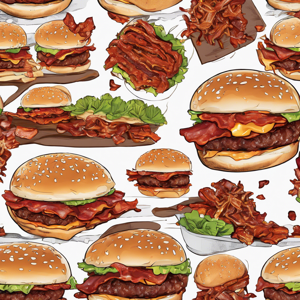 The Spicy BBQ Bacon Burger has a rich history rooted in American culinary tradition. This mouthwatering burger is a tantalizing combination of juicy beef patty, crispy bacon, spicy BBQ sauce, and a toasted bun. It first gained popularity in the southern United States, where chefs infused classic BBQ flavors with a fiery kick. Today, this delectable dish can be found in countless diners and restaurants across the country. The key to a perfect Spicy BBQ Bacon Burger lies in the quality of the ingredients, especially the spicy BBQ sauce and perfectly cooked bacon. For a unique twist, some chefs add jalapenos or pepper jack cheese for an extra kick. One of the best places to savor this iconic burger is at renowned BBQ joints in Texas, where the smoky flavors and spicy heat come together in perfect harmony. Whether you're in the mood for a classic American comfort food or a fiery culinary adventure, the Spicy BBQ Bacon Burger is sure to satisfy your cravings.