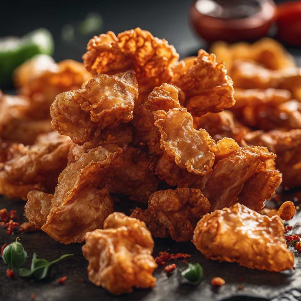 - Allow the spicy chicken cracklings to cool for a few minutes before serving. Enjoy the crispy and flavorful snack!