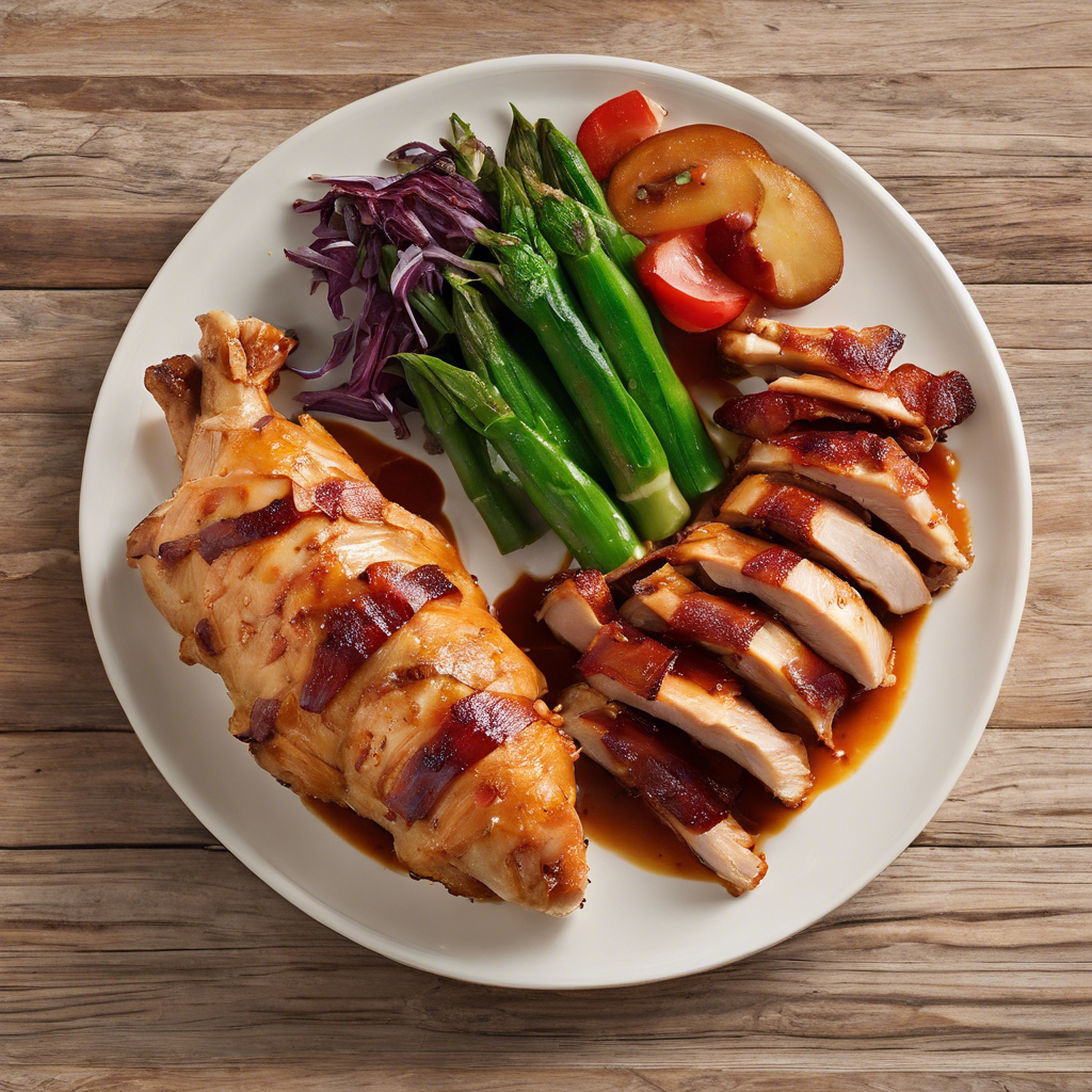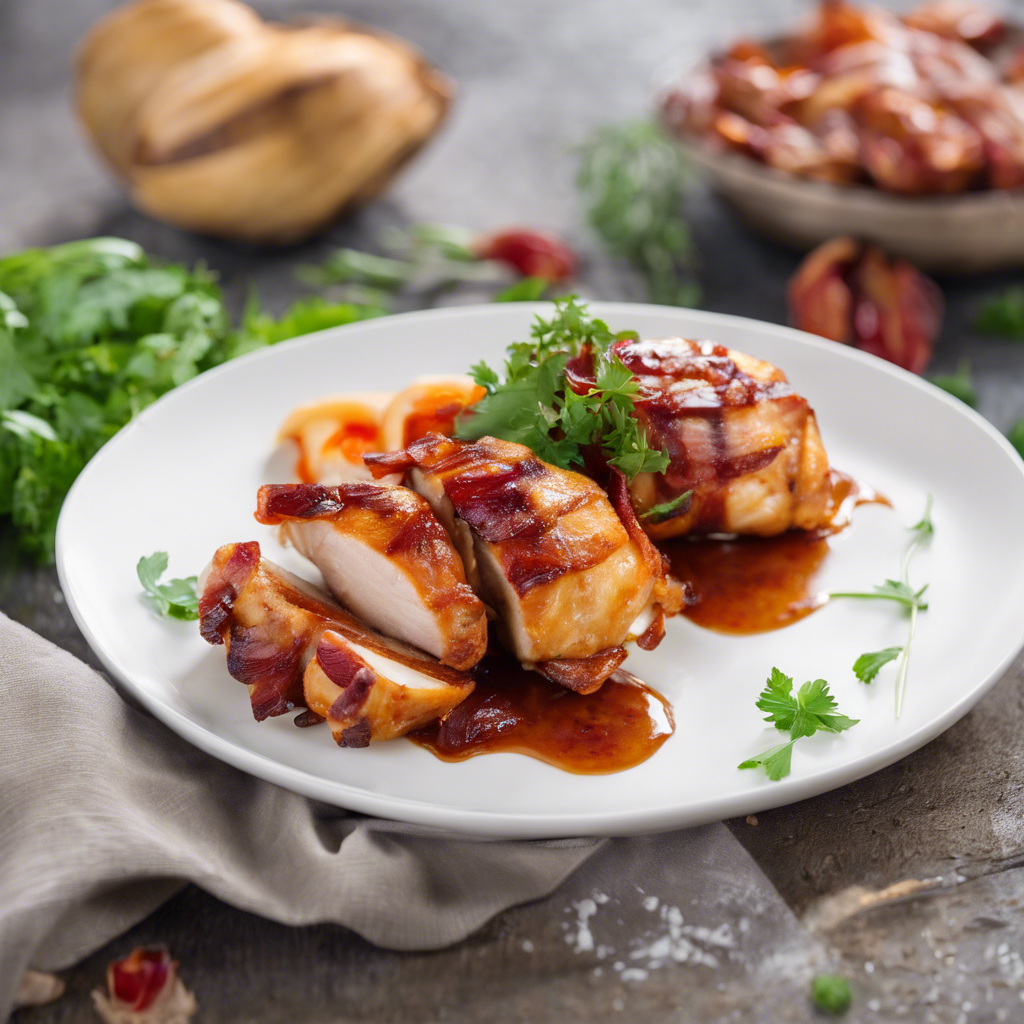 The Spicy Chipotle BBQ Stuffed Chicken Breast wrapped in bacon is a mouthwatering dish that combines the smoky heat of chipotle peppers with the savory sweetness of barbecue sauce. This culinary creation is believed to have originated in the southern United States, where chefs sought to infuse traditional chicken breast with bold, spicy flavors. The dish gained popularity for its unique combination of ingredients and the way it tantalizes the taste buds. Today, it can be found in many restaurants across the country, with each chef adding their own twist to the recipe. The key to a perfect Spicy Chipotle BBQ Stuffed Chicken Breast lies in the balance of flavors and the careful wrapping of the bacon to ensure it crisps up just right. For those seeking the best version of this dish, look for a restaurant with a reputation for expertly grilled meats and a flair for bold, smoky flavors.