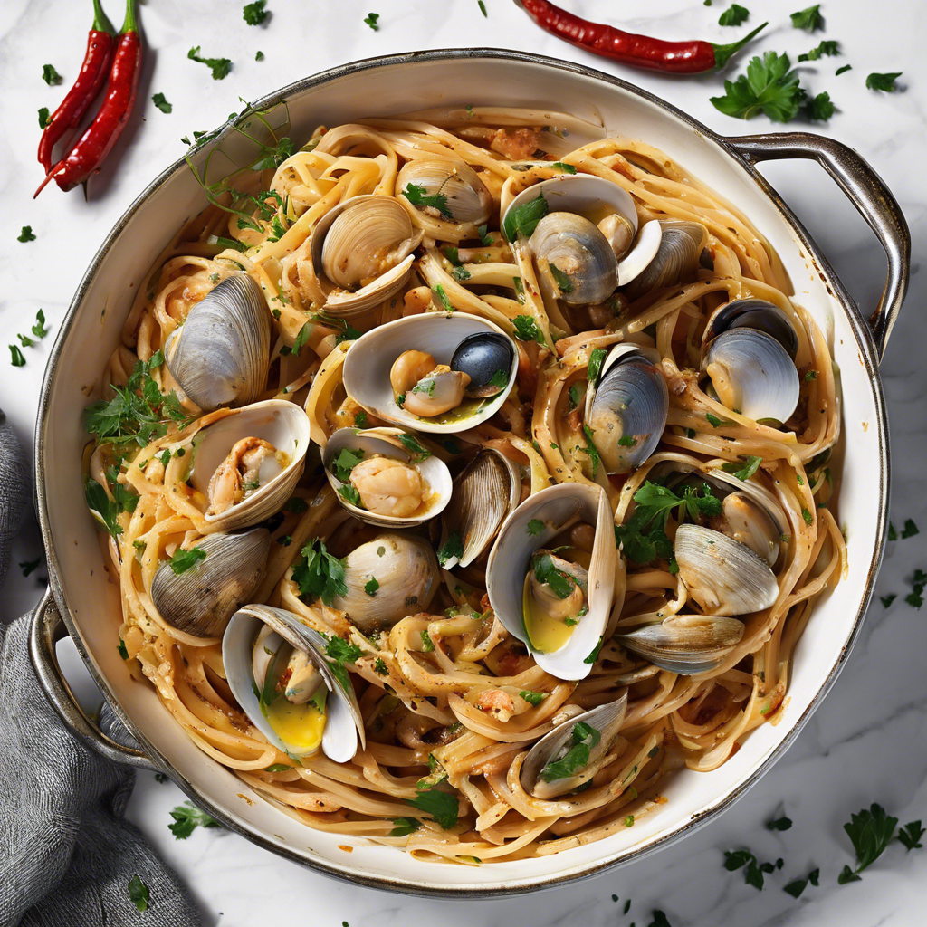 Spicy Clam Linguine is a classic Italian seafood pasta dish that originated in the coastal regions of Italy. This flavorful and aromatic dish is believed to have been created by Italian fishermen who combined fresh clams with garlic, chili, and linguine to create a simple yet delicious meal. The dish gained popularity in the United States in the 20th century, particularly in Italian-American communities. Today, it is a staple in many Italian restaurants, especially those located in coastal areas. The key to a perfect Spicy Clam Linguine lies in using the freshest clams, high-quality linguine, and a perfect balance of spicy and savory flavors. For a unique twist, some chefs add white wine or cherry tomatoes to enhance the dish's complexity. One of the best places to savor an authentic Spicy Clam Linguine is in the coastal towns of Italy, where the dish is prepared using locally sourced clams and traditional Italian cooking techniques. Whether enjoyed in a rustic trattoria or a fine dining restaurant, Spicy Clam Linguine is a delightful culinary experience that captures the essence of Italian coastal cuisine.