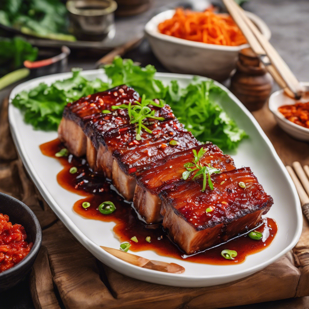 Spicy Gochujang Marinated Pork Belly is a beloved Korean dish with a rich history. Originating in the Gyeongsang province, this flavorful dish has been a staple in Korean cuisine for centuries. The marinade, made with spicy gochujang paste, soy sauce, garlic, and other seasonings, infuses the pork belly with a perfect balance of heat and sweetness. Renowned chefs like David Chang have popularized this dish in the West, and it has become a favorite in Korean BBQ restaurants worldwide. For the best version of this dish, head to Seoul, where expert chefs meticulously prepare and grill the marinated pork belly to perfection. The key to this dish lies in the quality of the pork belly and the balance of flavors in the marinade. For a unique twist, consider slow-roasting the pork belly in the oven for an alternative method that yields tender, succulent meat. Whether you're in Korea or a local Korean restaurant, this dish is a must-try for any food enthusiast.