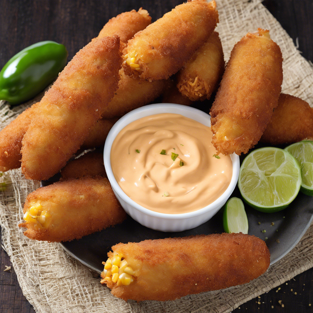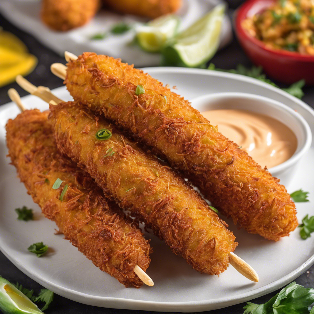 The Spicy Jalapeno Potato Chip Crusted Corn Dogs with a zesty sriracha mayo dip are a modern twist on a classic fair food favorite. This innovative dish originated in the bustling food scene of Southern California, where chefs sought to elevate the traditional corn dog with a spicy kick. The crispy, golden-brown exterior of the corn dog is coated with crushed jalapeno potato chips, adding a fiery crunch to every bite. The accompanying spicy sriracha mayo dip provides a perfect balance of heat and creaminess, enhancing the overall flavor experience. Today, this delectable creation can be savored in trendy gastropubs and food trucks across the country. To recreate this dish at home, it's crucial to use high-quality hot dogs and freshly crushed jalapeno potato chips for that irresistible texture and flavor. Whether enjoyed as a snack or a main course, these Spicy Jalapeno Potato Chip Crusted Corn Dogs are a must-try for food enthusiasts seeking a tantalizing fusion of heat and nostalgia.