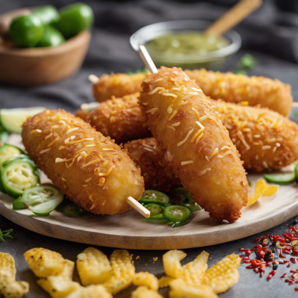 The Spicy Jalapeno Potato Chip Crusted Corn Dogs with extra cheese have a rich history rooted in the fusion of American and Mexican flavors. This delectable dish originated in the heart of Texas, where innovative chefs sought to elevate the classic corn dog. The marriage of crispy potato chips, fiery jalapenos, and gooey cheese adds a tantalizing twist to this beloved fair food. The best version of this dish can be found in food trucks and local eateries across the Lone Star State, where chefs take pride in perfecting the balance of heat and cheesiness. The key to mastering this dish lies in the quality of the cheese and the crunch of the potato chip crust. For a famous alternative method, some chefs opt for a spicy queso dip instead of traditional cheese, adding an extra layer of indulgence to this already irresistible treat.