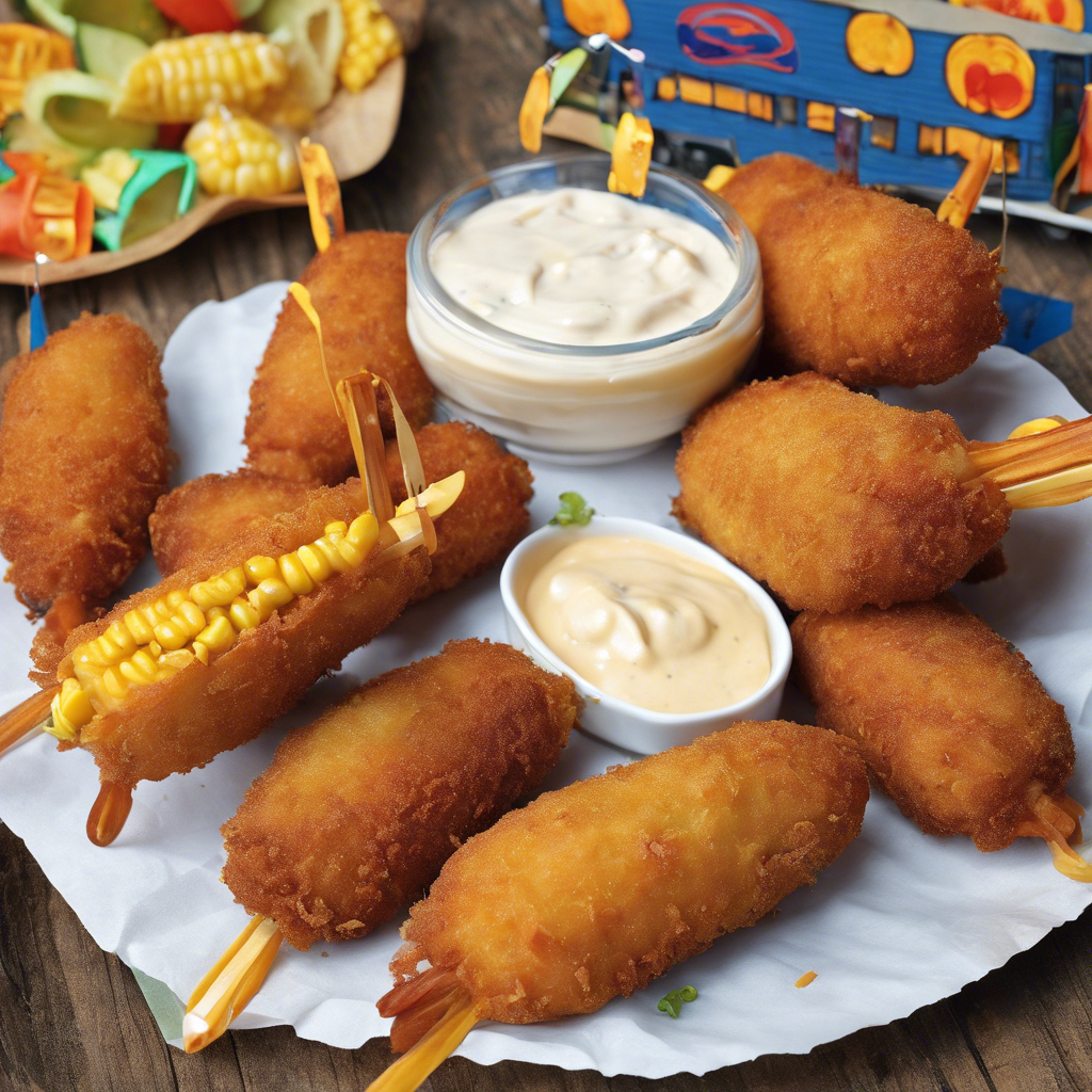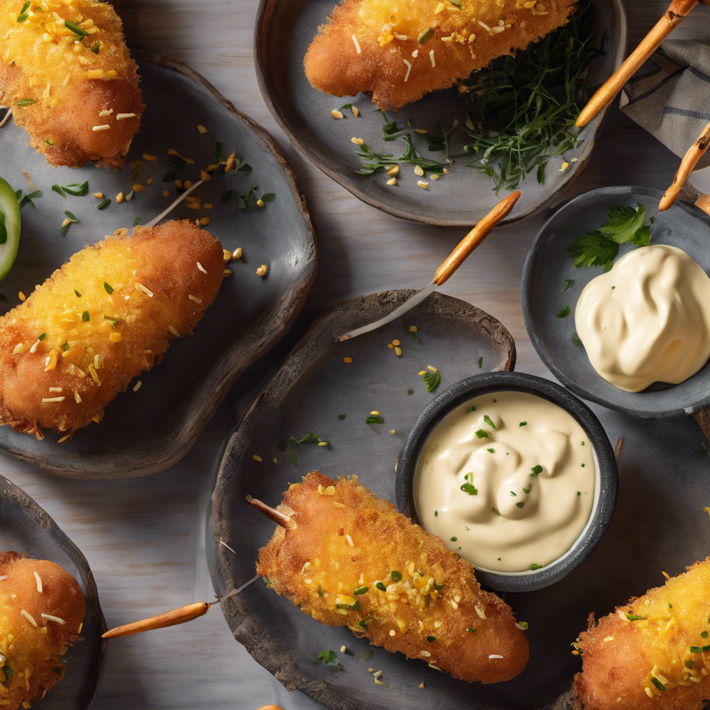 Originating in the heart of Texas, the Spicy Jalapeno Potato Chip Crusted Corn Dogs with Extra Cheese Dipping Sauce is a fusion of classic American fair food and zesty Tex-Mex flavors. This innovative dish was first created by Chef Maria Sanchez at the annual State Fair of Texas, where it quickly gained a cult following. The crispy, golden-brown corn dogs are coated in a spicy jalapeno potato chip crust, adding a kick of heat and crunch. The extra cheese dipping sauce, a velvety blend of cheddar and pepper jack, elevates the dish to a whole new level of indulgence. Today, the best version of this dish can be found at the renowned Tex-Mex restaurants in Dallas, where chefs have perfected the art of balancing the heat of the jalapeno with the creaminess of the cheese. To recreate this iconic dish at home, it's crucial to get the potato chip crust just right, ensuring it's both crispy and flavorful. Alternatively, some chefs opt for a gluten-free version using a cornmeal and crushed jalapeno chip coating for a unique twist. Whether enjoyed at a bustling fairground or a cozy Tex-Mex eatery, these Spicy Jalapeno Potato Chip Crusted Corn Dogs with Extra Cheese Dipping Sauce are a true celebration of bold flavors and culinary creativity.