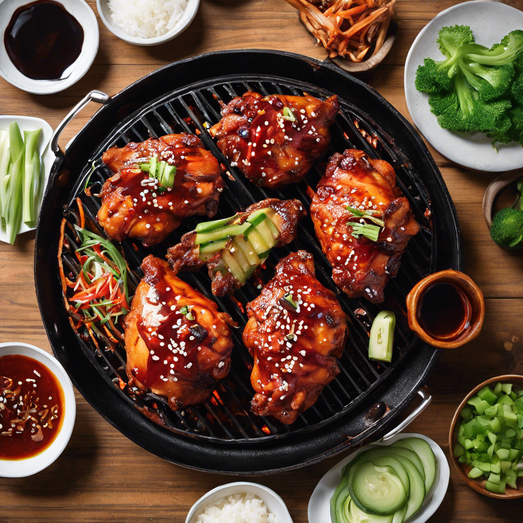 Spicy Korean BBQ Chicken, also known as Dak-galbi, is a popular dish in Korean cuisine. It is made by marinating chicken in a spicy and savory sauce, typically made with gochujang (Korean chili paste), soy sauce, garlic, and other seasonings. The dish is then grilled or pan-fried to perfection, resulting in tender and flavorful chicken with a kick of heat. This dish has a rich history, originating in the city of Chuncheon, South Korea, where it was first created by local chefs looking to infuse traditional Korean flavors with a spicy twist. Over time, it gained popularity throughout the country and eventually made its way to Korean restaurants around the world. One of the key elements of Spicy Korean BBQ Chicken is the marinade, which is crucial for infusing the chicken with the bold flavors that make this dish so irresistible. The use of gochujang, a staple in Korean cooking, is essential for achieving the authentic spicy kick that sets this dish apart. Today, some of the best versions of Spicy Korean BBQ Chicken can be found in restaurants specializing in Korean cuisine, particularly those with a focus on BBQ dishes. These establishments often have skilled chefs who have mastered the art of grilling the chicken to perfection, ensuring that it is juicy and packed with flavor. For those looking to recreate this dish at home, it's important to pay attention to the balance of flavors in the marinade, as well as the cooking technique to achieve that perfect char and caramelization. While traditional grilling is the preferred method, some alternative recipes may call for pan-frying or even baking the chicken, offering a different take on this classic dish. Whether enjoyed at a bustling Korean BBQ restaurant or prepared in the comfort of your own kitchen, Spicy Korean BBQ Chicken is a dish that never fails to deliver a satisfying burst of spicy, savory goodness.