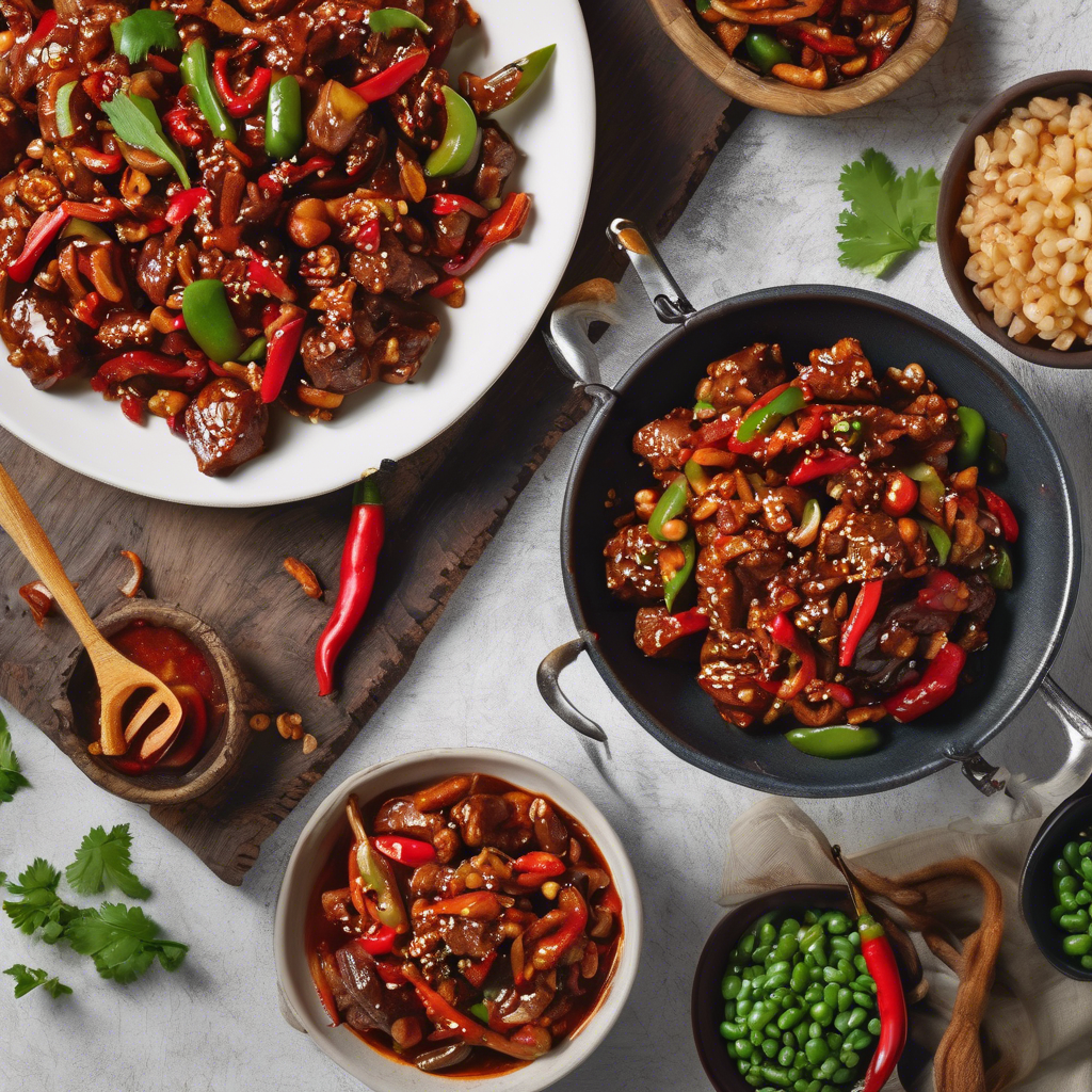 Spicy Kung Pao Beef is a classic Sichuan dish that originated in the Sichuan province of China. This flavorful and fiery dish is known for its bold combination of tender beef, crunchy peanuts, and a spicy, tangy sauce. Legend has it that the dish is named after Ding Baozhen, a Qing Dynasty official who loved the spicy flavors of Sichuan cuisine. The dish has since become a staple in Chinese restaurants worldwide, with chefs adding their own unique twists to the traditional recipe. Today, the best versions of Spicy Kung Pao Beef can be found in authentic Sichuan restaurants, where skilled chefs expertly balance the heat of the chilies with the umami of the soy sauce and the crunch of the peanuts. To make the perfect Spicy Kung Pao Beef, it's essential to use high-quality beef, fresh Sichuan peppercorns, and a good balance of sweet, sour, and spicy flavors in the sauce. While the traditional recipe calls for beef, some variations use chicken or tofu as a delicious alternative. Whether you're a fan of fiery flavors or just looking to spice up your dinner, Spicy Kung Pao Beef is a dish that never fails to impress.