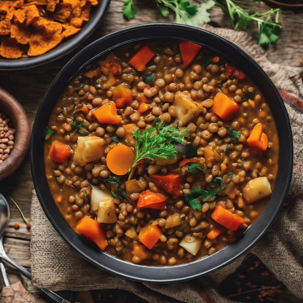 Spicy Lentil and Vegetable Stew is a hearty and flavorful dish with origins in the Middle East and South Asia. This vegan-friendly stew has been enjoyed for centuries, with its rich blend of spices and nutritious ingredients. Chefs in regions like India, Pakistan, and the Middle East have perfected their own versions of this dish, using a variety of vegetables and aromatic spices like cumin, coriander, and turmeric. The key to a delicious Spicy Lentil and Vegetable Stew lies in the balance of flavors and the quality of the lentils. Today, the best versions of this dish can be found in authentic Indian and Pakistani restaurants, where it's often served with naan or rice. For a twist, some chefs add coconut milk for a creamy texture, while others use different types of lentils for unique variations. Whether you're a fan of spicy food or simply looking for a comforting and nutritious meal, Spicy Lentil and Vegetable Stew is a must-try.