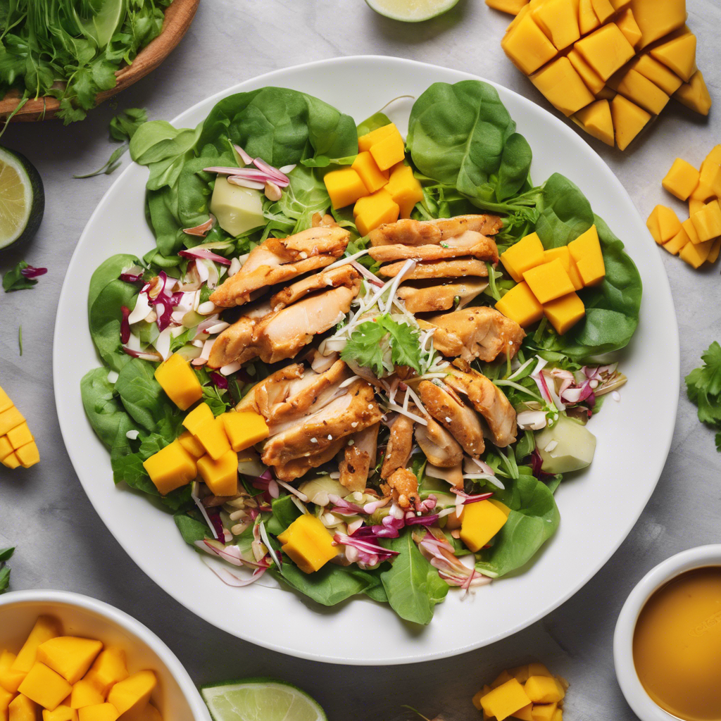 Spicy Mango Chicken Salad is a vibrant and flavorful dish that originated in Southeast Asia, known for its perfect balance of sweet, spicy, and tangy flavors. This refreshing salad typically features succulent grilled chicken, ripe mangoes, crisp vegetables, and a zesty dressing infused with chili, lime, and herbs. Renowned chefs like David Thompson and Andy Ricker have popularized this dish in their Thai and Southeast Asian restaurants, showcasing their expertise in balancing bold flavors. The best versions of this dish can be found in Thailand, where the tropical climate ensures the mangoes are at their peak sweetness. The key to a perfect Spicy Mango Chicken Salad lies in the ripe, juicy mangoes and the harmonious blend of spicy and tangy dressing. For a unique twist, some chefs incorporate ingredients like lemongrass or tamarind to elevate the dish's complexity. Whether enjoyed as a light lunch or a vibrant side dish, this salad is a celebration of Southeast Asian culinary artistry.