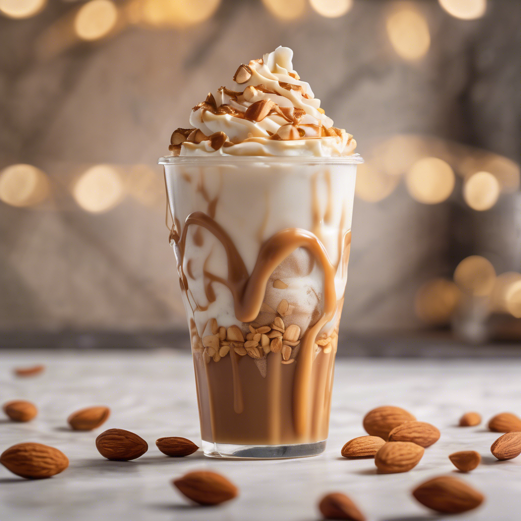 A delicious and refreshing frappuccino made with almond milk, caramel, and crunchy toppings.