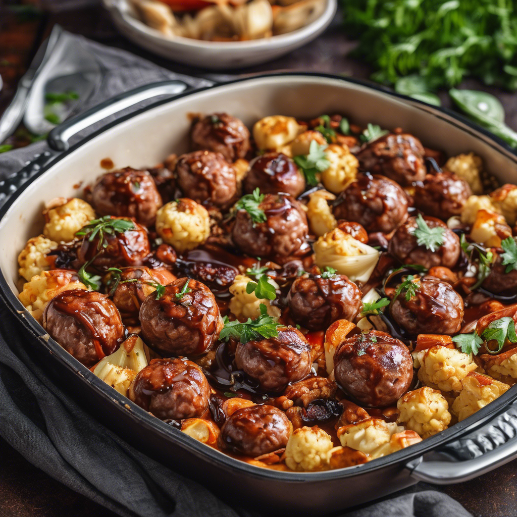 This sheet pan dinner is a delicious and easy one-pan meal that combines spicy sausage, roasted cauliflower, and a sweet balsamic glaze.