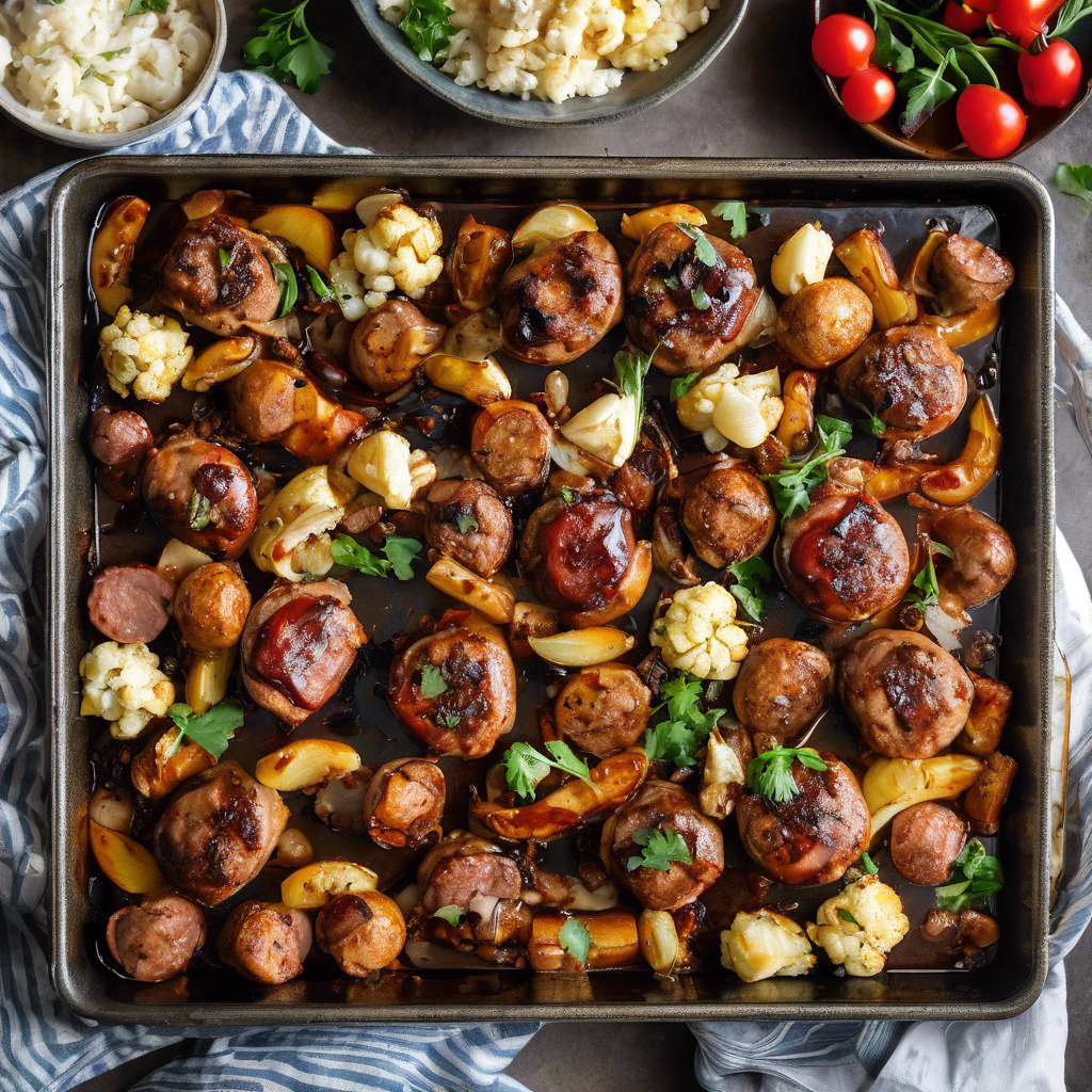 The Spicy Sausage and Cauliflower Sheet Pan Dinner with a drizzle of balsamic glaze is a mouthwatering dish that combines the robust flavors of spicy sausage, tender cauliflower, and the sweet tang of balsamic glaze. This dish has its roots in Italian and Mediterranean cuisine, where the bold flavors of sausage and the versatility of cauliflower are celebrated. The dish gained popularity in recent years as a convenient and delicious one-pan meal, perfect for busy weeknights. Chefs and home cooks alike have embraced this recipe for its simplicity and the way it brings out the natural flavors of the ingredients. One of the best versions of this dish can be found in the trattorias of Italy, where local sausages and fresh cauliflower are used to create a truly authentic and flavorful experience. The key to getting this dish right lies in using high-quality, spicy sausage and perfectly roasted cauliflower. The balsamic glaze adds a delightful touch of sweetness and acidity, elevating the dish to a whole new level. For a twist on the traditional recipe, some chefs recommend adding a sprinkle of red pepper flakes for an extra kick of heat, or substituting the cauliflower with broccoli for a slightly different flavor profile. Whether enjoyed in a cozy Italian restaurant or prepared at home, the Spicy Sausage and Cauliflower Sheet Pan Dinner with a drizzle of balsamic glaze is a satisfying and memorable dish that is sure to please the palate.