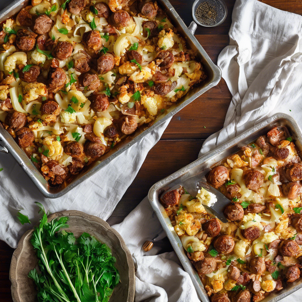 The Spicy Sausage and Cauliflower Sheet Pan Dinner is a mouthwatering dish that combines the robust flavors of spicy sausage, tender cauliflower, and savory Parmesan cheese. This delectable recipe has its roots in Italian and Mediterranean cuisine, where the bold flavors of sausage and the earthy taste of cauliflower are celebrated. Renowned chefs and home cooks alike have embraced this dish for its simplicity and bold flavors. The dish has gained popularity in recent years for its ease of preparation and its ability to satisfy even the most discerning palates. The key to a perfect Spicy Sausage and Cauliflower Sheet Pan Dinner lies in the quality of the ingredients. The spicy sausage should be of the highest quality, bursting with flavor and just the right amount of heat. The cauliflower should be fresh and tender, providing a delightful contrast to the bold sausage. For those looking to experience the best version of this dish, a visit to a traditional Italian or Mediterranean restaurant is a must. These establishments often have perfected the art of creating this dish, ensuring that every bite is a symphony of flavors. When preparing this dish at home, it's essential to roast the cauliflower and sausage to perfection, allowing the flavors to meld and intensify. The addition of Parmesan cheese adds a delightful nuttiness and depth to the dish, elevating it to new heights. Whether enjoyed at a cozy trattoria in Italy or prepared in the comfort of your own kitchen, the Spicy Sausage and Cauliflower Sheet Pan Dinner with a sprinkle of Parmesan cheese is a culinary delight that is sure to leave a lasting impression.