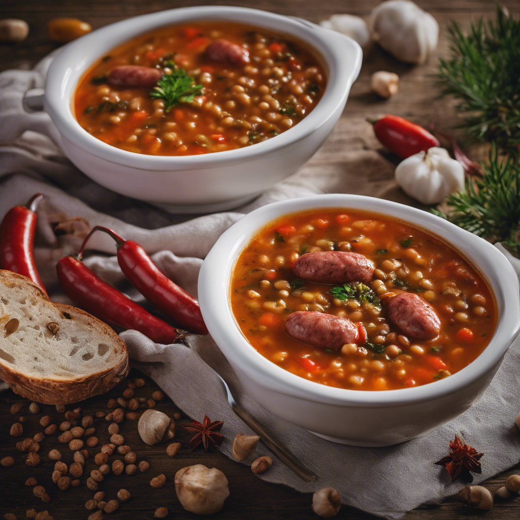 Spicy Sausage and Lentil Soup with a touch of smoked paprika has a rich history dating back to the Mediterranean region. This hearty dish has been a staple in Italian and Spanish cuisine for centuries, known for its robust flavors and comforting warmth. Renowned chefs like Lidia Bastianich and Jose Andres have popularized their own versions of this soup, adding their unique twists to the traditional recipe. The key to a perfect Spicy Sausage and Lentil Soup lies in the quality of the sausage and the balance of spices, with smoked paprika adding a delightful smoky depth. Today, the best versions of this dish can be found in rustic Italian trattorias and cozy Spanish tapas bars, where it's often served with crusty bread and a drizzle of extra virgin olive oil. Whether simmered slowly on the stovetop or prepared in a pressure cooker for a quicker meal, this soup is a beloved favorite for its soul-warming qualities and robust flavors.