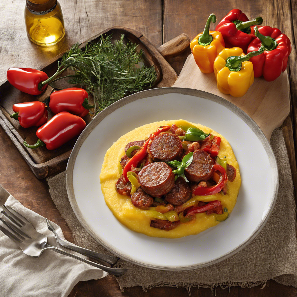 Spicy Sausage and Peppers over Creamy Polenta