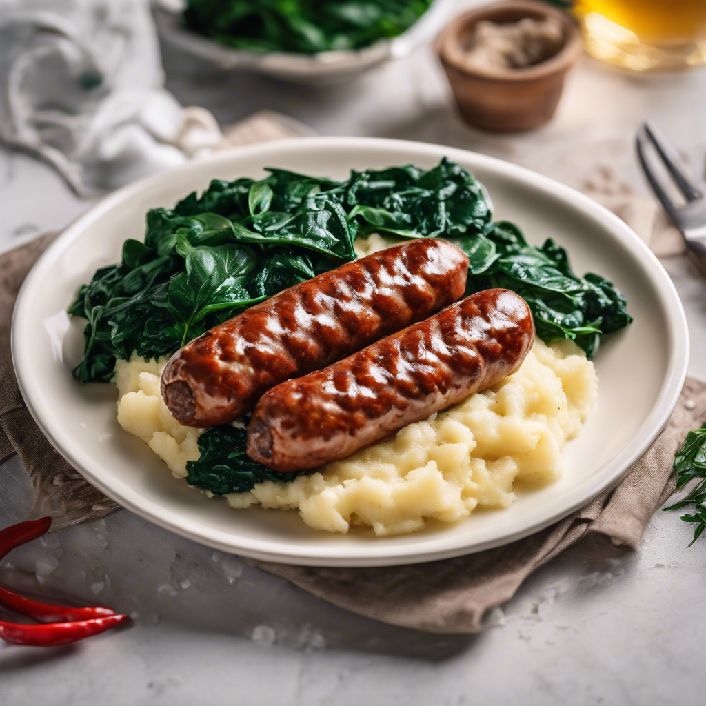 The history of Spicy Sausage with Mashed Potatoes and sautéed spinach is a tale of hearty, comforting flavors that have been enjoyed for generations. This dish has its roots in European cuisine, particularly in regions like Germany and Austria, where sausages are a staple. The spicy sausage brings a kick of flavor to the creamy mashed potatoes, while the sautéed spinach adds a touch of freshness and color to the plate. In recent years, this dish has gained popularity in upscale restaurants, where chefs put their own spin on the classic recipe. Some add caramelized onions or a drizzle of balsamic glaze for an extra layer of flavor. The best version of this dish can be found in traditional German or Austrian restaurants, where the sausages are often made in-house with a secret blend of spices, and the mashed potatoes are whipped to perfection. When making this dish at home, it's important to use high-quality, flavorful sausages and to season the mashed potatoes generously. Some alternative methods for making this dish include grilling the sausages for a smoky flavor or adding a dollop of whole grain mustard to the mashed potatoes for a tangy twist. Whether enjoyed in a cozy bistro or made from scratch in your own kitchen, Spicy Sausage with Mashed Potatoes and sautéed spinach is a timeless classic that never fails to satisfy.