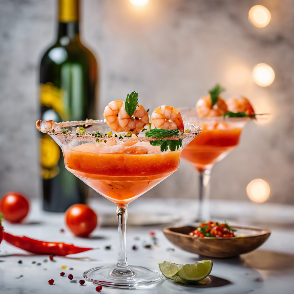 The Spicy Shrimp Cocktail served in a martini glass has a rich history dating back to the 1920s. This dish is a fusion of Mexican and American culinary traditions, with its origins traced to the coastal regions of Mexico and the vibrant cocktail culture of the United States. Renowned chefs like Rick Bayless and Bobby Flay have popularized this dish, infusing it with their own unique twists. Today, the best versions of this dish can be found in upscale seafood restaurants along the Gulf Coast, where fresh shrimp is abundant. The key to perfecting this dish lies in the balance of spicy cocktail sauce and the freshness of the shrimp. For a unique twist, some chefs incorporate tequila or mezcal into the cocktail sauce, adding a smoky depth to the dish. Whether enjoyed as an appetizer or a light meal, the Spicy Shrimp Cocktail in a martini glass is a delightful culinary experience that continues to evolve with each chef's creative touch.