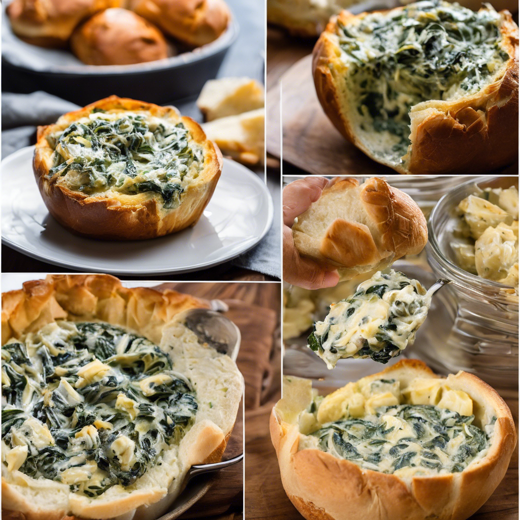 The history of Spinach and Artichoke Dip baked in a bread bowl can be traced back to the 1980s when it first gained popularity in the United States. This indulgent appetizer quickly became a staple in many American restaurants and households, known for its creamy, cheesy, and flavorful combination of spinach, artichokes, and various cheeses. Chefs across the country have put their own unique spin on this classic dish, with variations in ingredients and presentation. Some restaurants in the South have added a touch of Cajun seasoning for a spicy kick, while others in the Midwest have incorporated local cheeses for a regional twist. Today, the best versions of this dish can be found in cozy neighborhood eateries and upscale restaurants alike, where skilled chefs use high-quality ingredients and bake the dip to perfection in a hollowed-out bread bowl. The key to getting this dish right lies in the balance of flavors and textures, as well as achieving the ideal golden-brown crust on top. For those looking to recreate this dish at home, it's essential to use fresh spinach and artichokes, along with a blend of creamy cheeses such as mozzarella, Parmesan, and cream cheese. The bread bowl should be sturdy enough to hold the dip without becoming soggy, adding an extra layer of indulgence to the experience. While the traditional baked version is a crowd-pleaser, some innovative cooks have experimented with alternative methods, such as grilling the bread bowl for a smoky flavor or adding crispy bacon for an extra savory touch. Whether enjoyed as an appetizer or a party snack, Spinach and Artichoke Dip baked in a bread bowl continues to be a beloved dish that brings people together over its irresistible combination of flavors.