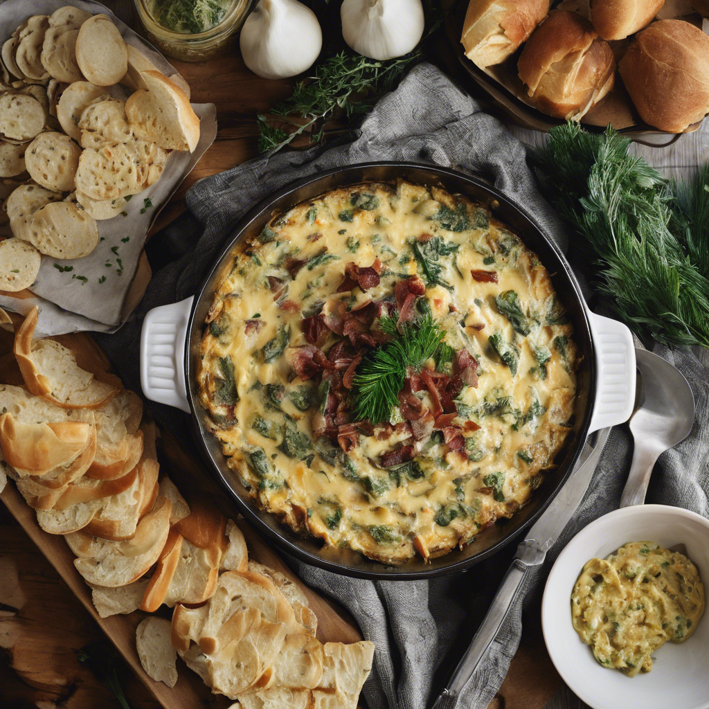 The history of Spinach and Artichoke Dip with added bacon can be traced back to the 1950s, when the classic spinach and artichoke dip was first created. The addition of bacon to this beloved dish adds a smoky, savory flavor that takes it to a whole new level. This indulgent twist on the traditional recipe has become a favorite in many restaurants and households across the United States. Chefs in the Southern United States, particularly in the states of Georgia and Louisiana, are known for their innovative take on this dish, often incorporating local ingredients and flavors. The rich and creamy texture of the dip, combined with the crispy bacon, creates a mouthwatering experience that is hard to resist. Today, the best versions of this dish can be found in upscale gastropubs and modern American eateries, where chefs take pride in using high-quality ingredients and perfecting the balance of flavors. The key to making a standout Spinach and Artichoke Dip with added bacon lies in using fresh spinach, artichokes, and quality bacon, as well as achieving the ideal creamy consistency. For those looking for a famous alternative method, some chefs recommend baking the dip in a bread bowl for an extra indulgent presentation. This not only adds a rustic charm to the dish but also infuses the dip with the subtle flavors of the bread. Whether enjoyed as an appetizer or a party snack, Spinach and Artichoke Dip with added bacon is a crowd-pleaser that continues to evolve while remaining a timeless classic.
