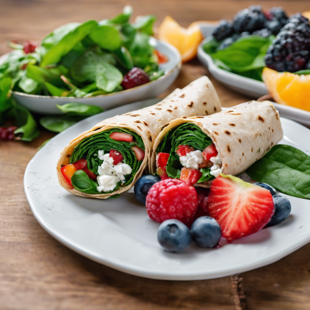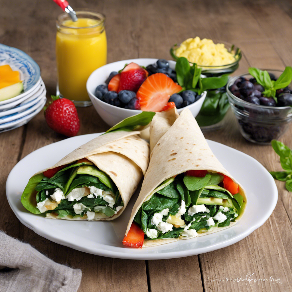 The Spinach and Feta Breakfast Wrap is a delightful fusion of flavors and textures that has become a staple in breakfast menus across the globe. Originating in the Mediterranean region, this dish combines the earthy richness of spinach with the tangy saltiness of feta cheese, all wrapped in a warm, soft tortilla. The addition of a side of fresh fruit salad adds a refreshing and healthy element to the meal, making it a popular choice for those seeking a balanced breakfast option. Chefs in Greece and Turkey are renowned for their mastery of incorporating spinach and feta into various dishes, and their influence can be seen in the widespread popularity of this breakfast wrap. The best versions of this dish can often be found in Mediterranean-inspired cafes and restaurants, where the ingredients are sourced fresh and the flavors are authentically vibrant. The key to a perfect Spinach and Feta Breakfast Wrap lies in the quality of the ingredients. Fresh, vibrant spinach and creamy, tangy feta cheese are essential for creating a harmonious balance of flavors. The tortilla should be warm and soft, providing a comforting embrace for the filling. As for the fruit salad, the selection of ripe, seasonal fruits is crucial for achieving a burst of natural sweetness and juiciness that complements the savory wrap. For those looking to add a twist to the traditional recipe, a popular alternative method involves incorporating scrambled eggs into the wrap, adding a luscious, velvety texture and an extra layer of protein to the dish. This variation is particularly favored in North American breakfast spots, where it has become a beloved morning indulgence. Today, the Spinach and Feta Breakfast Wrap with a side of fresh fruit salad can be savored in various eateries that celebrate the Mediterranean culinary heritage, offering a delightful and wholesome breakfast experience.