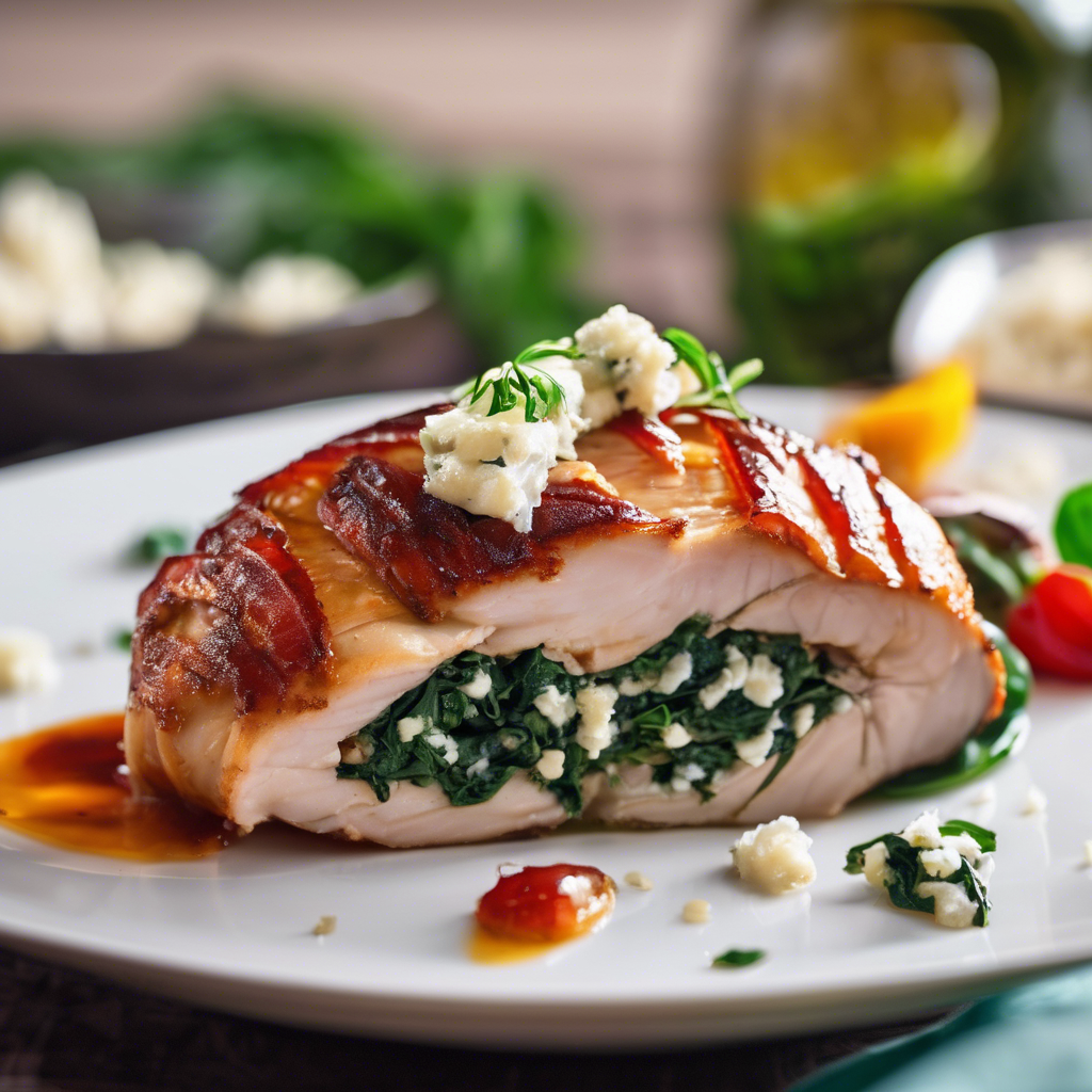 The history of Spinach and Feta Stuffed Chicken Breast wrapped in bacon is a delightful fusion of flavors and culinary techniques. This dish combines the rich tradition of Greek cuisine with the savory allure of bacon-wrapped entrees. The origins of this dish can be traced back to the Mediterranean region, where the combination of spinach and feta cheese has been a culinary staple for centuries. The addition of bacon brings a smoky, indulgent twist to this classic recipe. Renowned chefs and home cooks alike have embraced this dish, infusing it with their own creative touches. The succulent chicken breast is carefully stuffed with a vibrant mixture of spinach and tangy feta cheese, creating a burst of flavors with every bite. The bacon wrapping adds a crispy, savory element that elevates the dish to new heights. While this dish can be found on the menus of many upscale restaurants, it has also become a popular choice for home cooks looking to impress their guests with a gourmet meal. The best versions of this dish can be found in Greek-inspired eateries or restaurants specializing in modern twists on classic comfort foods. To achieve the perfect Spinach and Feta Stuffed Chicken Breast wrapped in bacon, attention to detail is key. The chicken should be tender and juicy, the spinach and feta filling should be well-seasoned and flavorful, and the bacon should be crisped to perfection. The result is a harmonious blend of textures and tastes that is sure to delight any palate. For those looking to explore alternative methods, grilling or baking the chicken can offer a unique twist on this dish, infusing it with smoky or oven-baked flavors. Whether enjoyed at a cozy family dinner or a sophisticated dining experience, this dish continues to captivate food enthusiasts with its irresistible combination of ingredients and techniques.