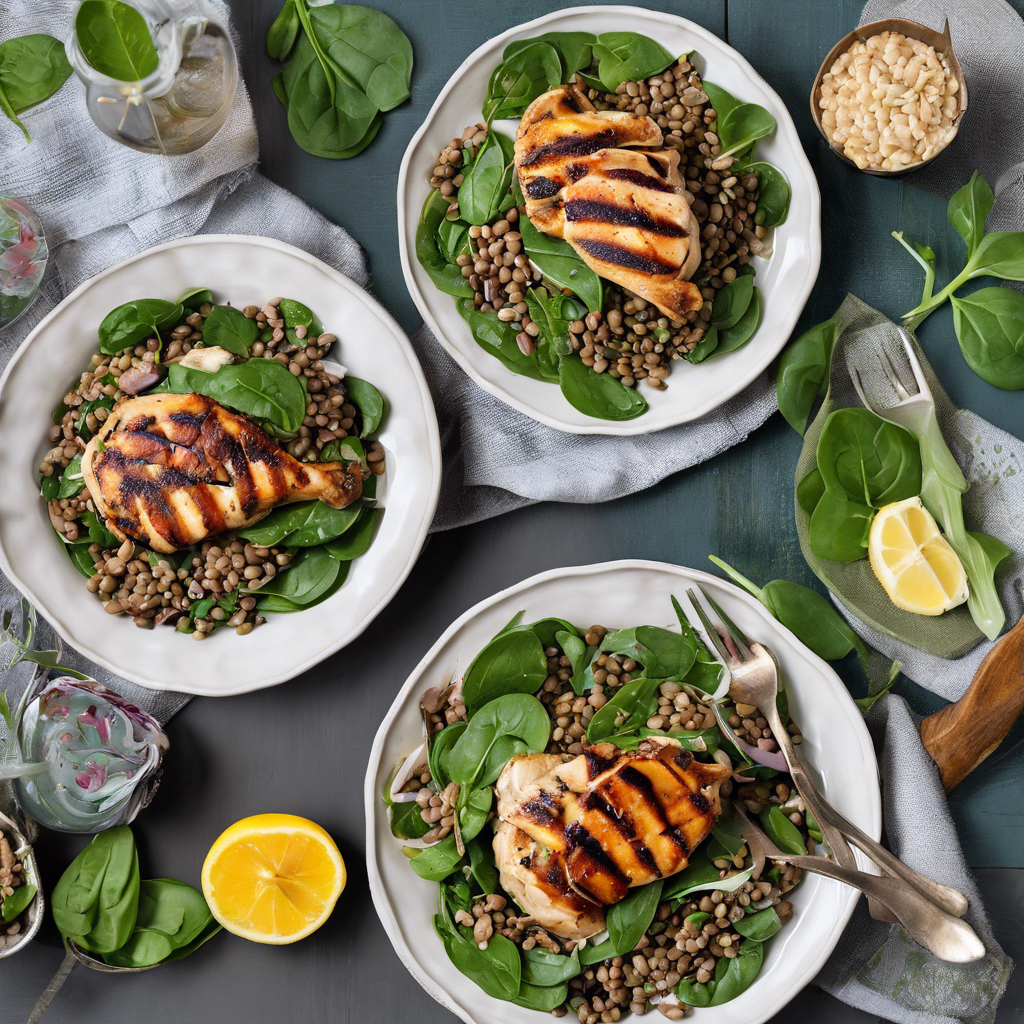 Grilled Chicken, Spinach, and Lentil Salad