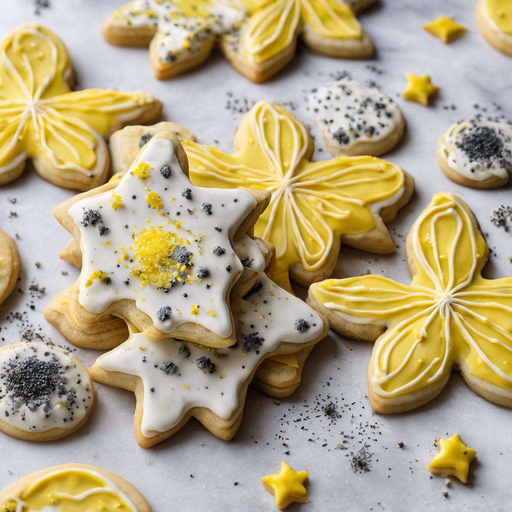 The history of Starry Lemon Sugar Cookies with added poppy seeds dates back to the early 20th century when a renowned pastry chef in Provence, France, experimented with traditional sugar cookie recipes. The addition of poppy seeds brought a delightful crunch and nutty flavor to the classic lemon sugar cookies, creating a unique and unforgettable treat. Today, this delightful twist on a classic recipe can be found in upscale patisseries and bakeries around the world. The best version of this dish can be found in artisanal bakeries that use fresh, high-quality ingredients. The key to perfecting this recipe lies in balancing the zesty lemon flavor with the subtle crunch of poppy seeds, creating a harmonious blend of sweet and tangy notes.