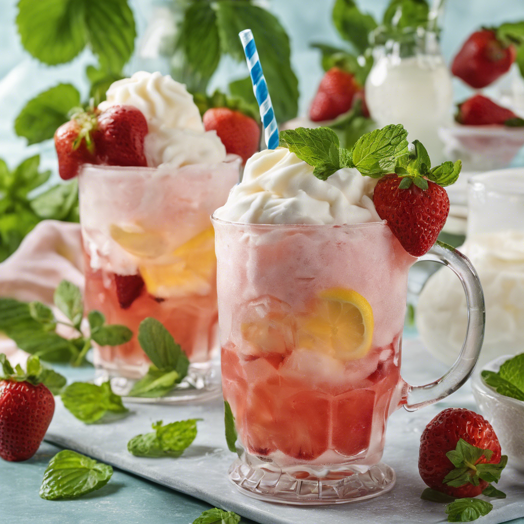 The Strawberry Lemonade Float with fresh mint garnish is a delightful summer treat that combines the refreshing flavors of strawberries, zesty lemonade, and aromatic mint. This indulgent beverage has its roots in classic soda fountain drinks, with a modern twist that elevates its taste and presentation. Renowned chefs in California and the Pacific Northwest have put their own spin on this drink, incorporating locally sourced strawberries and hand-picked mint for a burst of freshness. The best version of this drink can be found in artisanal cafes and farm-to-table restaurants that prioritize quality ingredients. The key to perfecting this beverage lies in using ripe, juicy strawberries and freshly squeezed lemonade, topped with a generous scoop of creamy vanilla ice cream and a sprig of fragrant mint. This delightful concoction is a must-try for anyone seeking a sweet, tangy, and herbaceous beverage to beat the summer heat.
