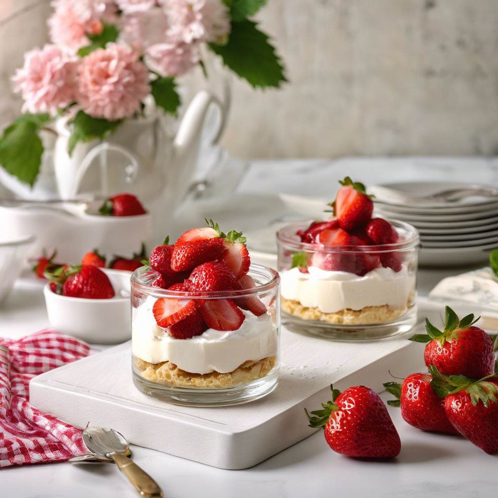 - Repeat the layers of strawberries, whipped cream, and cake until the glasses or bowls are filled, ending with a dollop of whipped cream on top.