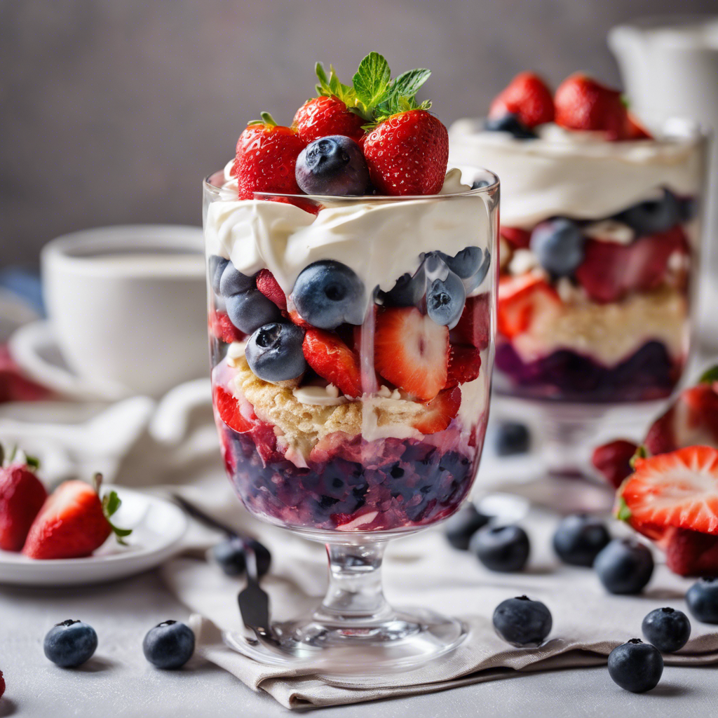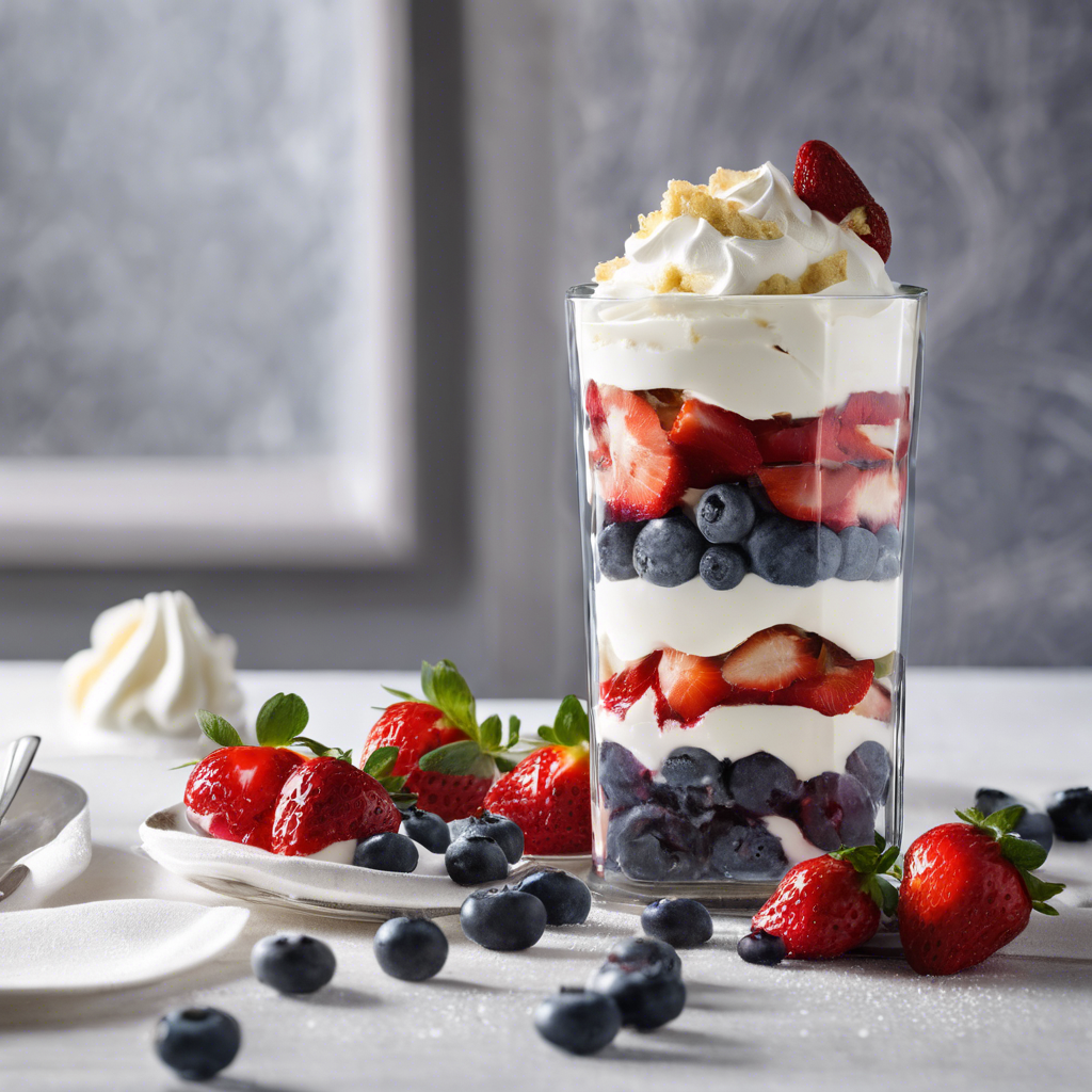 The Strawberry Shortcake Parfait is a delightful dessert that has been enjoyed for generations. Originating in the United States, this sweet treat is a beloved classic that combines layers of crumbled shortcake, luscious strawberries, and creamy whipped cream. The addition of fresh blueberries adds a burst of tangy sweetness, elevating the parfait to new heights of flavor. Chefs across the country have put their own spin on this beloved dessert, with variations popping up in restaurants from coast to coast. In the South, you might find a version with a touch of bourbon in the whipped cream, while in the Northeast, a drizzle of maple syrup could be the perfect finishing touch. For the best version of this dish, look for ripe, juicy strawberries and plump, sweet blueberries. The key to a perfect Strawberry Shortcake Parfait is the balance of flavors and textures, with the shortcake providing a buttery crunch against the soft berries and pillowy cream. Whether enjoyed in a quaint diner or a high-end restaurant, this timeless dessert is sure to satisfy any sweet tooth.