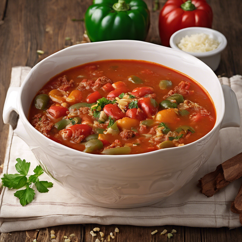 Stuffed Pepper Soup is a hearty and comforting dish that originated in the United States. It is inspired by the classic stuffed bell peppers, but in soup form. This flavorful soup typically consists of ground beef, bell peppers, rice, tomatoes, and a blend of savory spices. The dish has gained popularity for its rich and satisfying flavors, making it a beloved comfort food for many. Chefs and home cooks alike have put their own unique spin on the recipe, adding ingredients like Italian sausage or incorporating different types of peppers for a personalized touch. Today, the best versions of this dish can be found in cozy diners and family-owned restaurants across the Midwest and Northeast regions of the US. The key to a delicious Stuffed Pepper Soup lies in the perfect balance of spices and the quality of the ingredients used. Whether it's served with a dollop of sour cream or a sprinkle of fresh herbs, this soup is a delightful way to enjoy the flavors of stuffed peppers in a warm and satisfying bowl.