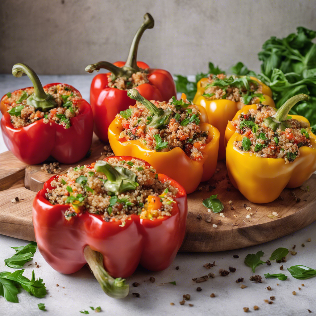 - Spoon the quinoa mixture into the prepared bell peppers, packing it down and mounding it on top.