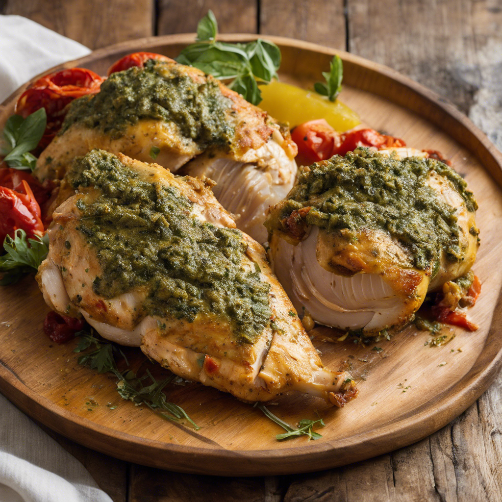Sun-Dried Tomato Pesto Stuffed Chicken is a delectable dish that originated in Italy, where it was created by skilled chefs who sought to combine the rich flavors of sun-dried tomatoes and pesto with tender chicken. This dish has since gained popularity worldwide for its savory and aromatic taste. The best version of this dish can be found in authentic Italian restaurants, where chefs meticulously prepare the chicken by stuffing it with a flavorful mixture of sun-dried tomatoes, basil pesto, and cheese, then roasting it to perfection. The key to making this dish shine is using high-quality sun-dried tomatoes and fresh basil for the pesto. For a twist, some chefs also grill the chicken for a smoky flavor. Whether served as a main course or as part of a gourmet meal, Sun-Dried Tomato Pesto Stuffed Chicken is a culinary delight that never fails to impress.
