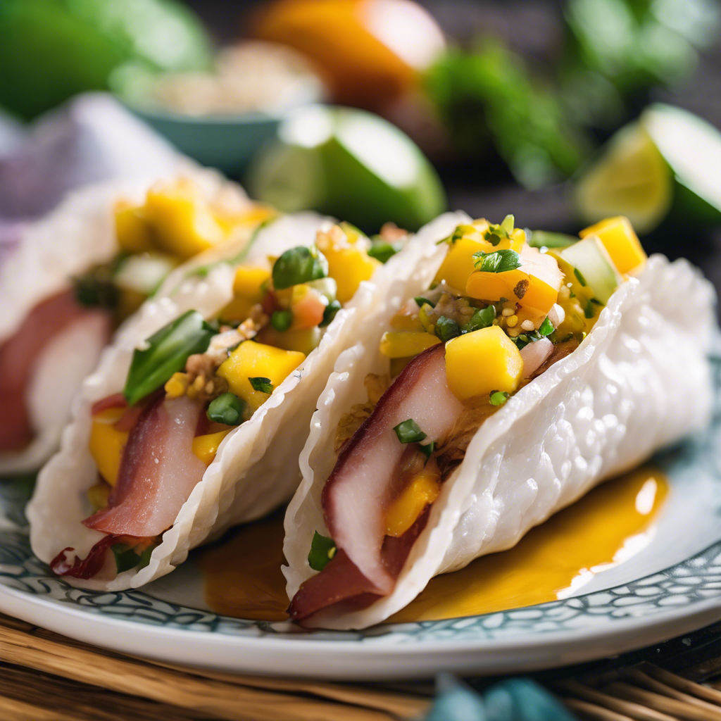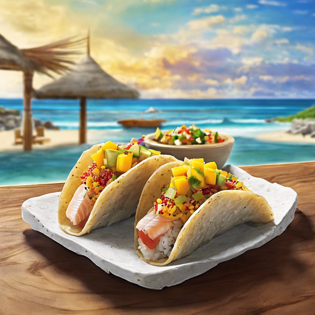 Sushi Tacos with mango salsa topping are a fusion of Japanese and Mexican cuisines, combining the flavors of fresh seafood, rice, and tropical fruit. This innovative dish first gained popularity in the early 2000s, when chefs in Southern California began experimenting with unconventional sushi presentations. The marriage of crispy taco shells, delicate sashimi, and zesty mango salsa created a sensation, quickly spreading to trendy restaurants across the country. Today, the best versions of this dish can be found in coastal cities known for their seafood, such as Los Angeles and San Diego. The key to perfecting this dish lies in sourcing high-quality sashimi-grade fish and ripe, juicy mangoes for the salsa. Whether enjoyed as an appetizer or a main course, sushi tacos with mango salsa are a delightful blend of textures and flavors that continue to captivate food enthusiasts worldwide.