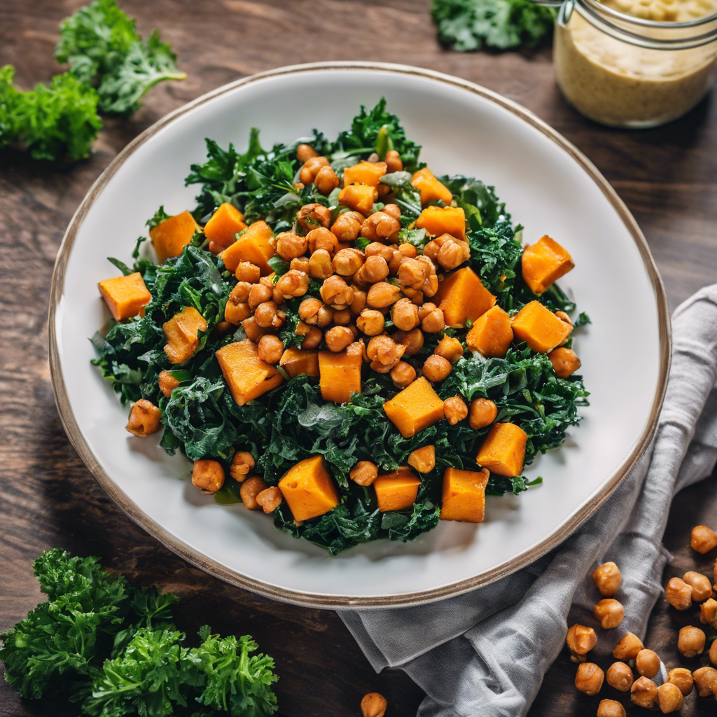 Sweet Potato and Kale Salad with Roasted Chickpeas