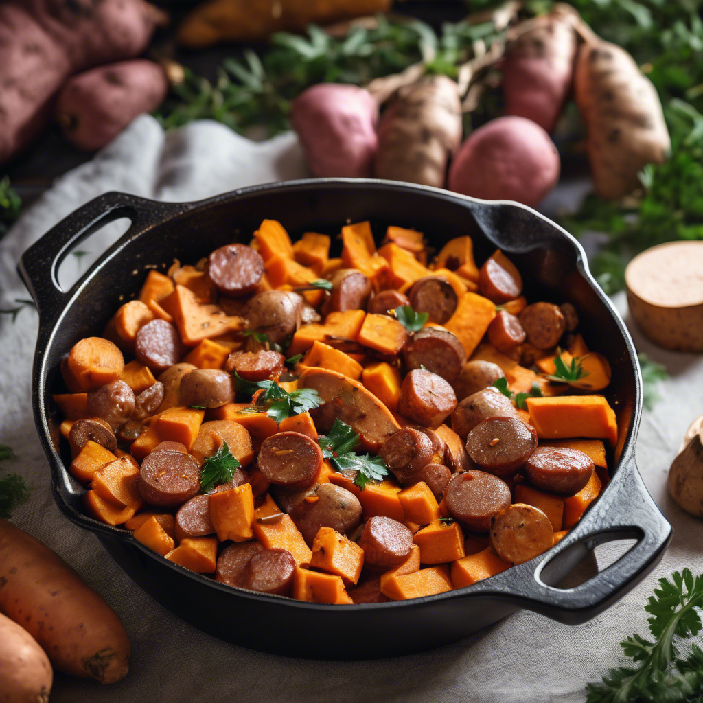 The Sweet Potato and Sausage Skillet is a hearty and flavorful dish that has its roots in Southern cuisine. This one-pan meal has gained popularity for its delicious combination of sweet and savory flavors. The dish typically consists of sweet potatoes, sausage, onions, and a variety of seasonings, all cooked together in a skillet to create a comforting and satisfying meal. This dish has been a staple in Southern cooking for generations, with each family adding their own unique twist to the recipe. Chefs and home cooks alike have embraced this dish for its simplicity and versatility, making it a go-to option for busy weeknight dinners or casual gatherings. The best versions of this dish can be found in Southern restaurants and diners, where chefs take pride in using locally sourced ingredients and traditional cooking methods to bring out the best flavors. The key to getting this dish right lies in the quality of the sausage and the perfect balance of sweet and savory flavors. Some alternative methods for making this dish include adding bell peppers, kale, or even a sprinkle of cheese for an extra indulgent twist. Today, the Sweet Potato and Sausage Skillet continues to be a beloved comfort food, cherished for its rich history and delicious taste. Whether enjoyed at a cozy Southern restaurant or prepared at home with a personal touch, this dish is sure to satisfy and delight.