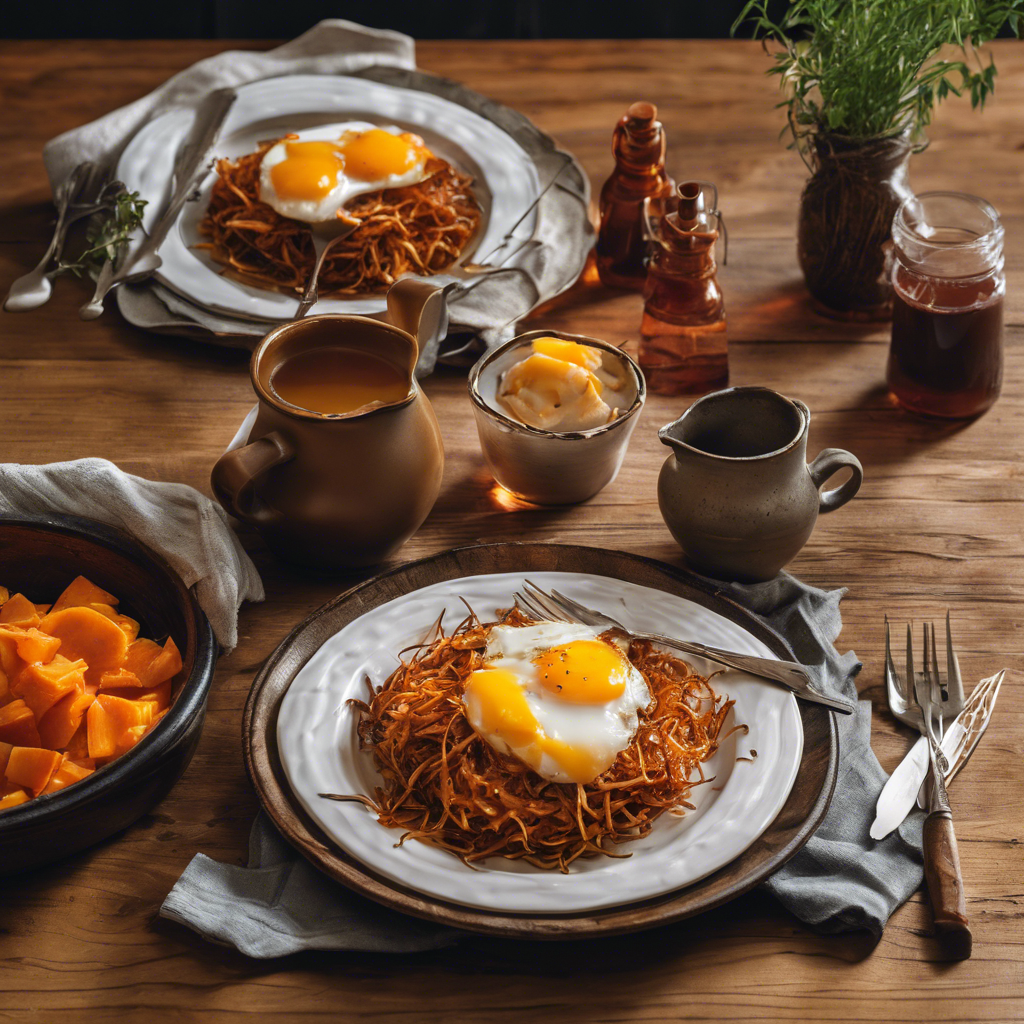Sweet Potato Hash Browns with Maple Syrup is a delightful dish that combines the earthy sweetness of sweet potatoes with the rich, indulgent flavor of maple syrup. This dish has its roots in traditional American cuisine, where sweet potatoes have long been a staple ingredient. The crispy, golden-brown hash browns are often served as a side dish or a breakfast item, and the addition of maple syrup adds a deliciously sweet and savory twist. Chefs across the United States have put their own spin on this classic dish, with variations popping up in restaurants from coast to coast. In the South, you might find a version of sweet potato hash browns with a touch of Cajun seasoning for a spicy kick, while in the Northeast, chefs might add a sprinkle of cinnamon for a warm, comforting flavor. One of the best places to enjoy this dish is in the heart of the South, where chefs have perfected the art of creating crispy, golden sweet potato hash browns that are drizzled with locally sourced maple syrup. The key to making the perfect sweet potato hash browns lies in achieving the ideal balance of crispy exterior and tender interior, and of course, the quality of the maple syrup cannot be overlooked. For those looking to recreate this dish at home, sourcing high-quality sweet potatoes and maple syrup is essential. Additionally, mastering the technique of grating and frying the sweet potatoes to achieve that coveted crispy texture is crucial. Some alternative methods for making this dish include adding a sprinkle of sea salt or a dash of cayenne pepper to elevate the flavors, or even incorporating diced onions or bell peppers for added depth. Whether enjoyed as a side dish or the star of a breakfast spread, Sweet Potato Hash Browns with Maple Syrup is a delightful marriage of flavors that celebrates the best of American comfort food.