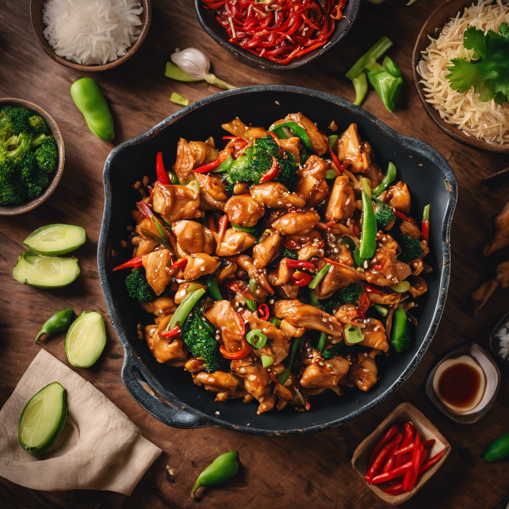 Szechuan Chicken Stir-fry with extra spicy sauce has a rich history rooted in the Szechuan province of China. This fiery dish is a staple of Szechuan cuisine, known for its bold flavors and intense heat. The dish features tender chunks of chicken stir-fried with a medley of vegetables and a potent, tongue-tingling Szechuan peppercorn-laden sauce. Renowned chefs in Szechuan province have perfected the art of balancing the numbing heat of the peppercorns with the fiery kick of chili peppers, creating a symphony of flavors that dance on the palate. Today, the best versions of this dish can be found in authentic Szechuan restaurants, where skilled chefs wield their woks with precision, ensuring the perfect sear on the chicken and vegetables while infusing them with the complex, spicy sauce. To achieve the authentic taste, it's crucial to use high-quality Szechuan peppercorns and chili peppers, as they are the soul of this dish. For those seeking a famous alternative method, the "dry-frying" technique is a popular variation, where the chicken is first marinated, then dry-fried until crispy before being stir-fried with the spicy sauce, resulting in a delightful contrast of textures.