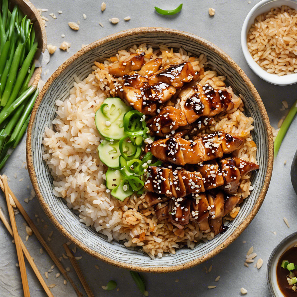 The Teriyaki Chicken and Brown Rice Bowl has a rich history rooted in Japanese cuisine. The dish originated in the Kanto region of Japan, where it was traditionally prepared with grilled or broiled chicken marinated in a sweet and savory teriyaki sauce, served over a bed of steamed brown rice. The dish gained popularity in the United States during the 20th century, becoming a staple in Japanese restaurants and Asian fusion eateries. Renowned chefs like Nobu Matsuhisa have put their own spin on the dish, incorporating unique ingredients and cooking techniques. Today, the best versions of this dish can be found in authentic Japanese restaurants that prioritize high-quality, fresh ingredients and a perfectly balanced teriyaki sauce. The key to a delicious Teriyaki Chicken and Brown Rice Bowl lies in the flavorful marination of the chicken and the precise cooking of the rice to achieve a tender, yet slightly chewy texture. For a twist on the traditional recipe, some chefs also incorporate vegetables like broccoli, bell peppers, and carrots for added color and nutrition.
