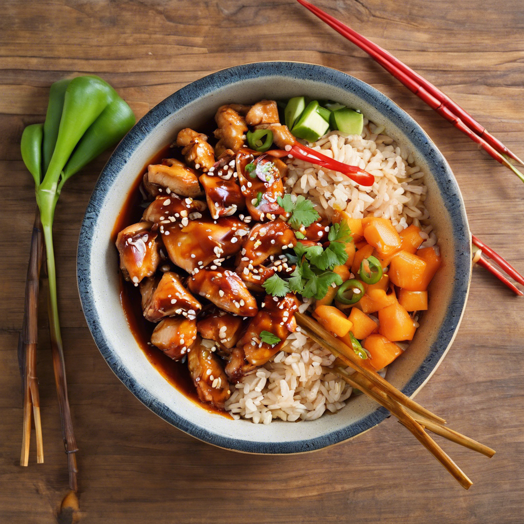 The Teriyaki Chicken and Brown Rice Bowl with a spicy Sriracha glaze is a modern twist on a classic Japanese dish. The traditional teriyaki chicken has been a staple in Japanese cuisine for centuries, known for its sweet and savory flavor. The addition of a spicy Sriracha glaze adds a kick of heat, creating a perfect balance of flavors. This fusion dish has gained popularity in recent years, especially in the United States, where chefs have been experimenting with bold flavors and innovative combinations. The dish is often served in trendy Asian fusion restaurants, where chefs showcase their creativity by blending traditional Japanese flavors with modern twists. The key to a perfect Teriyaki Chicken and Brown Rice Bowl with a spicy Sriracha glaze lies in the balance of flavors. The tender, juicy chicken marinated in a rich teriyaki sauce pairs perfectly with the nutty, wholesome brown rice. The spicy Sriracha glaze adds a fiery kick that elevates the dish to a whole new level. For those seeking the best version of this dish, renowned Asian fusion restaurants in cities like Los Angeles, New York, and San Francisco are known for serving exceptional Teriyaki Chicken and Brown Rice Bowls with a spicy Sriracha glaze. However, with the right ingredients and a good recipe, this delectable dish can be recreated at home to perfection. In conclusion, the Teriyaki Chicken and Brown Rice Bowl with a spicy Sriracha glaze is a delightful fusion of traditional Japanese flavors and modern culinary innovation. Whether enjoyed at a trendy restaurant or homemade with care, this dish is a true delight for the taste buds.