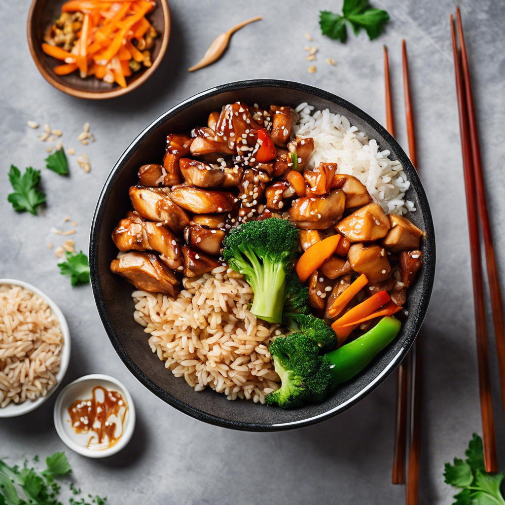 The Teriyaki Chicken and Brown Rice Bowl with added stir-fried vegetables is a delightful fusion of Japanese and American cuisine. This dish originated in Japan, where teriyaki, a cooking technique involving grilling or broiling with a glaze of soy sauce, mirin, and sugar, was popularized. The addition of stir-fried vegetables brings a healthy and colorful twist to the traditional recipe. Chefs in both Japan and the United States have put their own spin on this dish, incorporating local produce and flavors. Today, the best versions of this dish can be found in Japanese restaurants that prioritize fresh, high-quality ingredients. The key to a perfect Teriyaki Chicken and Brown Rice Bowl lies in the balance of sweet and savory flavors in the teriyaki sauce, the tender juiciness of the chicken, and the crispness of the stir-fried vegetables. This dish is a harmonious blend of textures and tastes, making it a favorite among those seeking a satisfying and wholesome meal.
