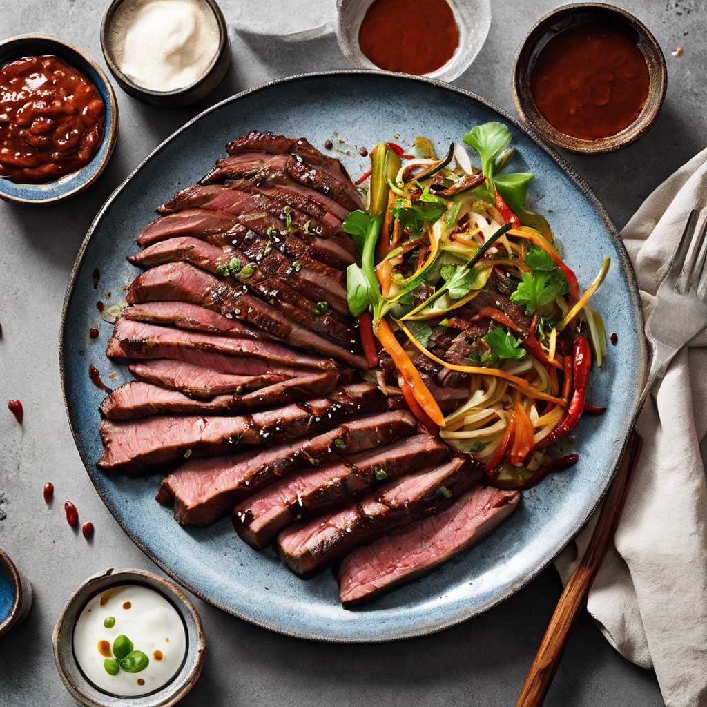 The history of Teriyaki Marinated Flank Steak takes a fiery twist with the infusion of spicy Korean gochujang sauce. This fusion dish combines the traditional Japanese teriyaki marination with the bold flavors of Korea. Renowned chefs in the bustling streets of Seoul and Tokyo experimented with this innovative blend, creating a tantalizing harmony of sweet, savory, and spicy notes. The dish gained popularity in Korean-Japanese fusion restaurants, where it became a star attraction. Today, the best versions of this dish can be savored in trendy Asian fusion eateries, where the succulent flank steak is marinated to perfection in the spicy gochujang sauce, delivering a symphony of flavors. The key to mastering this dish lies in achieving the ideal balance between the sweetness of teriyaki and the fiery kick of gochujang, ensuring a mouthwatering experience with every bite.