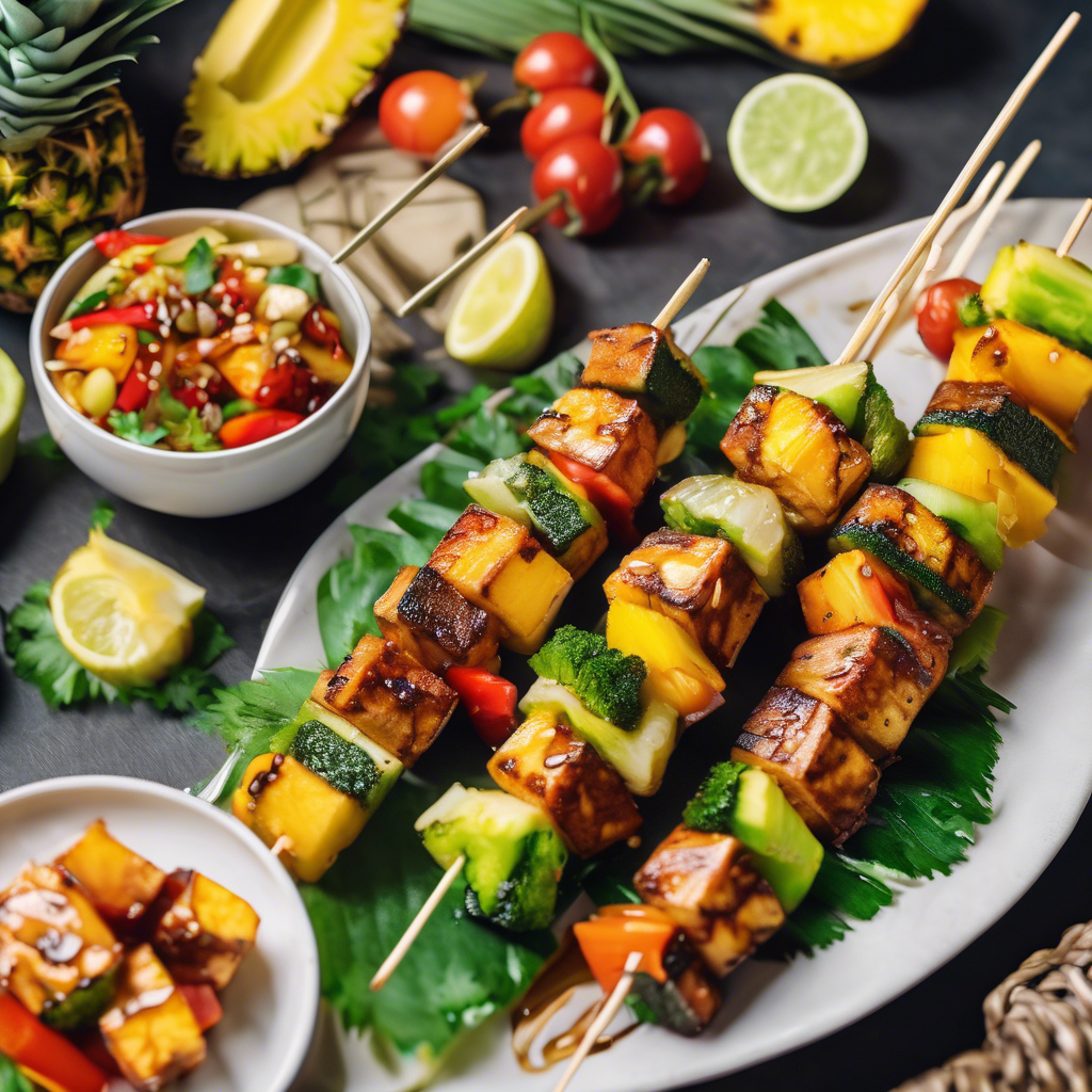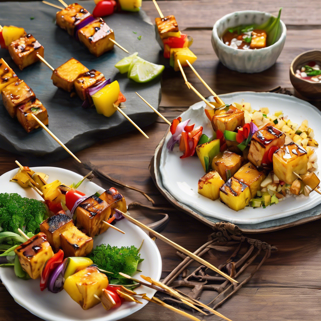 The history of Teriyaki Tofu and Vegetable Skewers with pineapple chunks is a fusion of Japanese and Hawaiian flavors. This dish originated from the creative minds of chefs looking to combine the savory, umami flavors of teriyaki with the sweet and tangy taste of pineapple. The dish gained popularity in Hawaiian restaurants, where chefs sought to incorporate local produce like pineapple into traditional Japanese dishes. Today, the best versions of this dish can be found in Hawaiian and Japanese fusion restaurants, where the key is to get the teriyaki marinade just right to balance the sweetness of the pineapple. Some alternative methods include grilling the skewers for a smoky flavor or adding a sprinkle of sesame seeds for an extra crunch.
