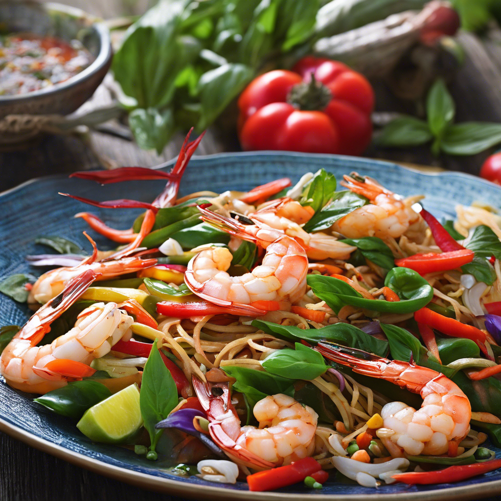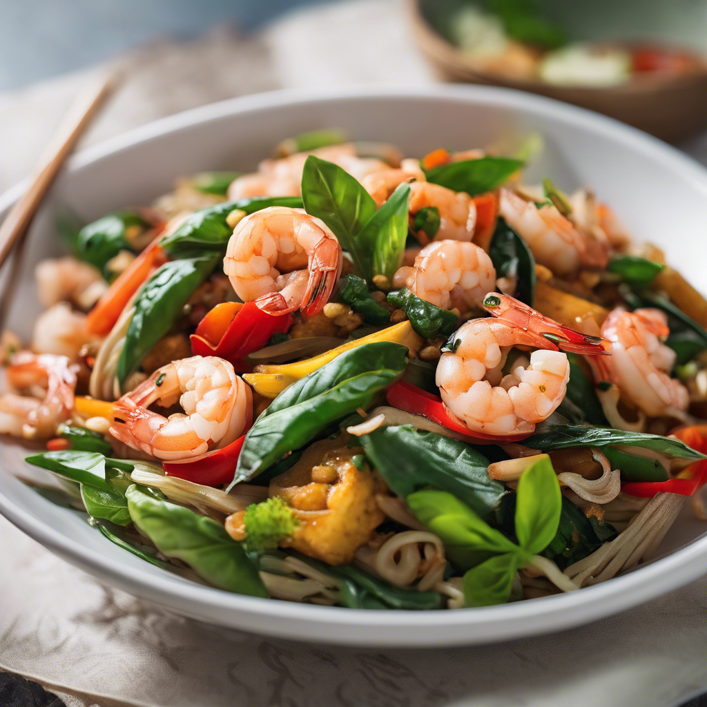 The Thai Basil Shrimp Stir-Fry with extra vegetables is a vibrant and flavorful dish that has its roots in the bustling street markets of Thailand. This dish is a fusion of traditional Thai flavors and fresh, colorful vegetables, creating a delightful balance of textures and tastes. Renowned chefs in Thailand, such as Chef Ian Kittichai, have popularized this dish, infusing it with their own unique twists and techniques. The key to a perfect Thai Basil Shrimp Stir-Fry lies in the freshness of the ingredients, especially the aromatic Thai basil and plump, succulent shrimp. The dish is best enjoyed when the vegetables are crisp and vibrant, adding a delightful crunch to each bite. The fragrant blend of garlic, chilies, and fish sauce creates a symphony of flavors that dance on the palate. For the best version of this dish, one must seek out authentic Thai restaurants that prioritize using fresh, high-quality ingredients. The stir-fry method is crucial to achieving the perfect texture and flavor, as the quick cooking process preserves the crispness of the vegetables and the juiciness of the shrimp. In addition to the traditional recipe, some chefs and home cooks may opt to add a variety of extra vegetables such as bell peppers, snap peas, and baby corn to enhance the dish's visual appeal and nutritional value. This variation adds a delightful medley of colors and textures, elevating the dish to a new level of culinary artistry. Whether enjoyed in the bustling streets of Bangkok or recreated in a home kitchen, the Thai Basil Shrimp Stir-Fry with extra vegetables is a celebration of fresh, vibrant flavors that continue to captivate food enthusiasts around the world.