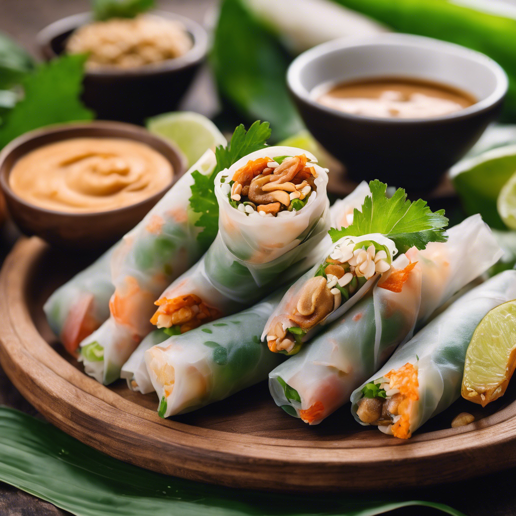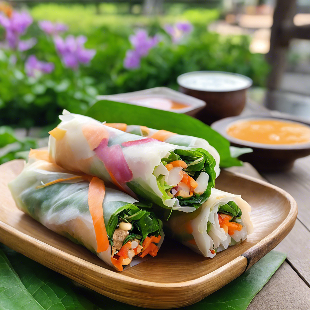 Thai Fresh Spring Rolls with peanut dipping sauce have a rich history rooted in Thai cuisine. This dish is a popular appetizer known for its fresh and vibrant flavors. The origins of this dish can be traced back to the streets of Thailand, where vendors would skillfully wrap fresh vegetables, herbs, and sometimes shrimp or tofu in delicate rice paper. The peanut dipping sauce, a creamy and savory accompaniment, adds a delightful contrast to the lightness of the spring rolls. Renowned Thai chefs and restaurants, such as those in Bangkok and Chiang Mai, have perfected the art of creating these delectable rolls. Today, the best versions of this dish can be found in authentic Thai eateries that prioritize using fresh, high-quality ingredients. The key to making exceptional Thai Fresh Spring Rolls lies in the freshness of the ingredients, the delicate wrapping of the rice paper, and the balance of flavors in the peanut dipping sauce. While the traditional recipe calls for a peanut-based sauce, some variations may include a spicy chili kick or a hint of sweetness from palm sugar. Whether enjoyed as an appetizer or a light meal, Thai Fresh Spring Rolls with peanut dipping sauce continue to captivate food enthusiasts with their exquisite taste and cultural significance.
