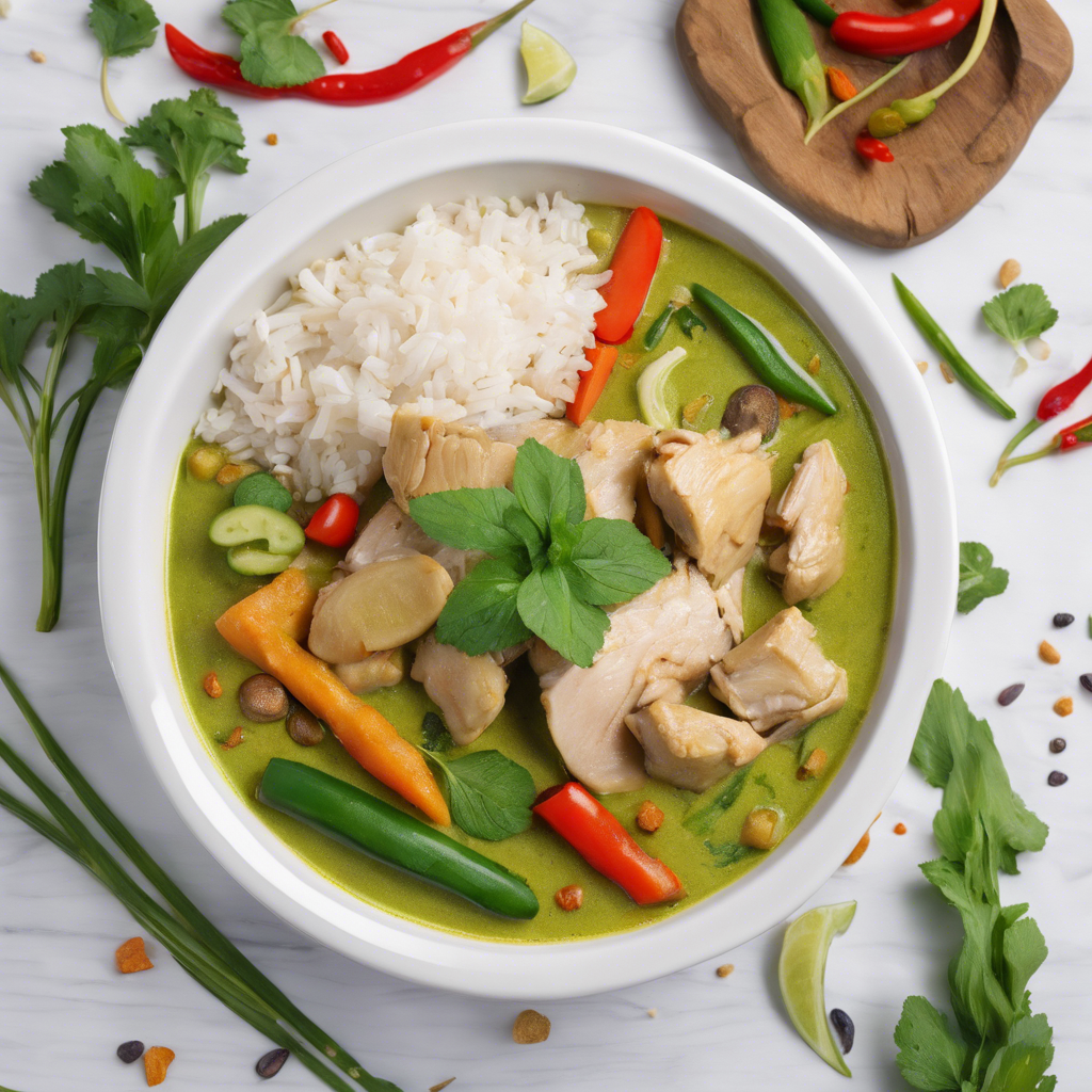 Thai Green Curry Chicken with extra vegetables is a popular and flavorful dish that originated in Thailand. This aromatic and spicy curry is made with a blend of green chilies, lemongrass, galangal, and other fragrant herbs and spices, giving it its signature green color and bold flavor. The addition of extra vegetables such as bell peppers, bamboo shoots, and eggplant adds a delightful crunch and freshness to the dish. This dish has a rich history in Thai cuisine, with roots in the central region of Thailand. It has been perfected by skilled chefs in renowned Thai restaurants, where the balance of flavors and the use of fresh, high-quality ingredients are paramount. One famous alternative method for making this dish is using a traditional mortar and pestle to pound the ingredients into a fine paste, which enhances the flavors and aromas of the curry. Today, the best versions of Thai Green Curry Chicken with extra vegetables can be found in authentic Thai restaurants that prioritize using authentic Thai ingredients and traditional cooking methods. The key to getting this dish right lies in the quality of the green curry paste, the freshness of the vegetables, and the perfect balance of spices and heat. For those looking to recreate this dish at home, sourcing authentic Thai green curry paste and using a variety of fresh vegetables is essential to achieving the authentic flavors of this beloved Thai dish.