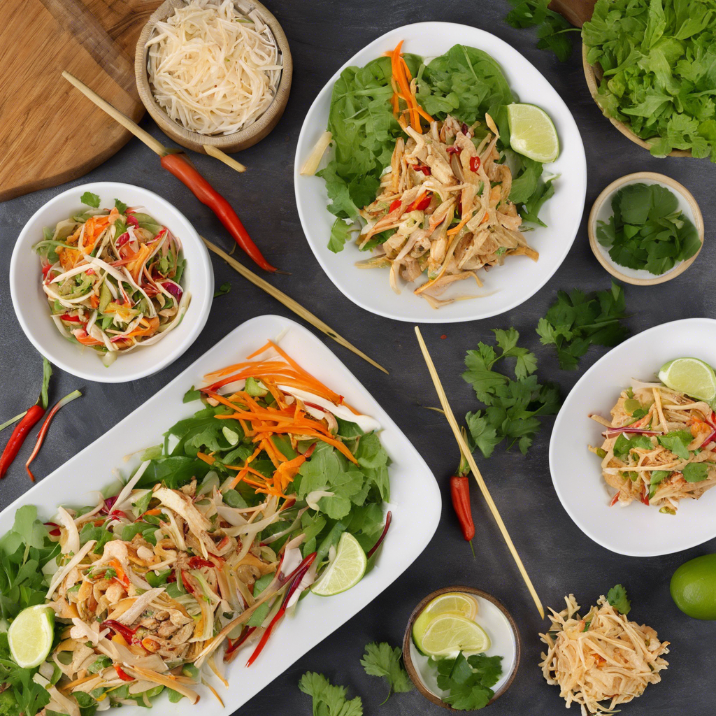 Thai Lemongrass Chicken Salad is a vibrant and zesty dish that originates from the streets of Thailand. This refreshing salad is a harmonious blend of tender grilled chicken, fragrant lemongrass, fresh herbs, and a tangy dressing made with lime juice, fish sauce, and chili. Renowned Thai chefs, such as David Thompson and Andy Ricker, have popularized this dish in their restaurants, showcasing the bold flavors of Thai cuisine. The best version of this dish can be found in the bustling street markets of Bangkok, where the aroma of lemongrass and grilled chicken fills the air. To make this dish shine, it's crucial to use fresh lemongrass and to grill the chicken to perfection. Alternatively, some chefs incorporate a unique twist by adding crispy shallots or peanuts for added texture and flavor.