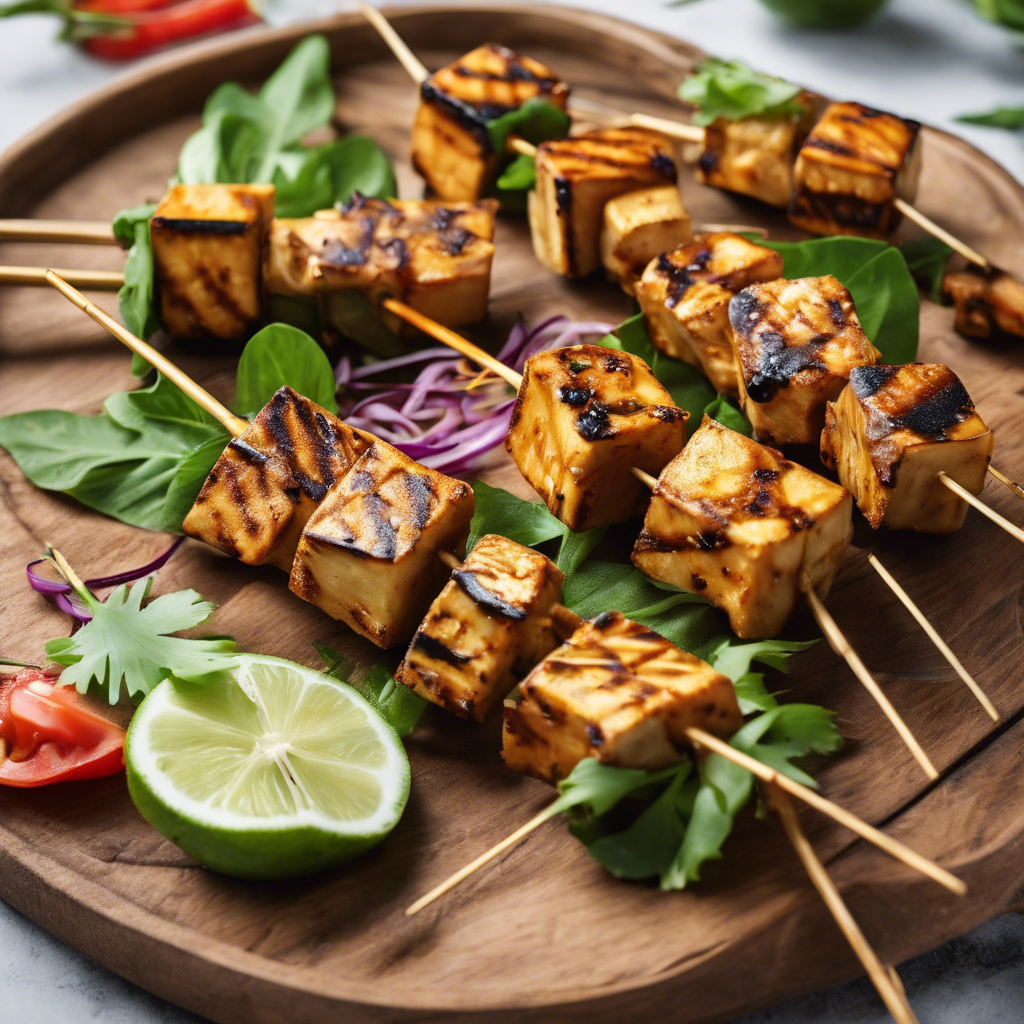 - Serve the grilled tofu satay skewers with additional lime wedges and a side of peanut sauce for dipping, if desired. Enjoy!