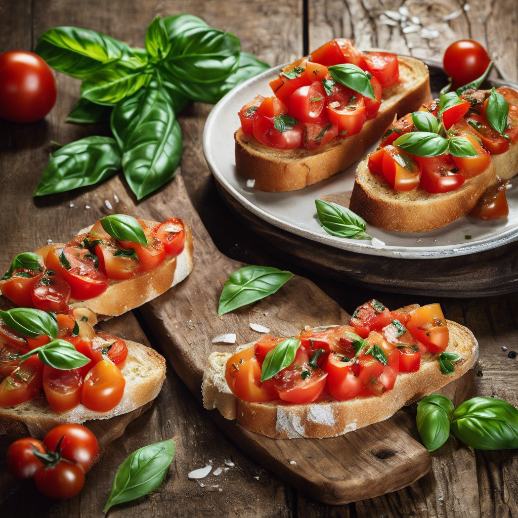 Tomato and Basil Bruschetta is a classic Italian antipasto that originated in central Italy. The dish is believed to have been created by Italian farmers as a way to use up stale bread. The simplicity of the ingredients allows the flavors to shine through, making it a popular appetizer around the world. The ripe, juicy tomatoes combined with fresh basil, garlic, and extra virgin olive oil create a burst of Mediterranean flavors. The best version of this dish can be found in the Tuscan region of Italy, where the tomatoes are sun-ripened and the basil is fragrant. The key to a perfect bruschetta lies in using high-quality, ripe tomatoes and fresh basil. Some chefs also add a drizzle of balsamic glaze for an extra depth of flavor. Whether served as a starter or a light meal, Tomato and Basil Bruschetta is a delightful dish that captures the essence of Italian cuisine.